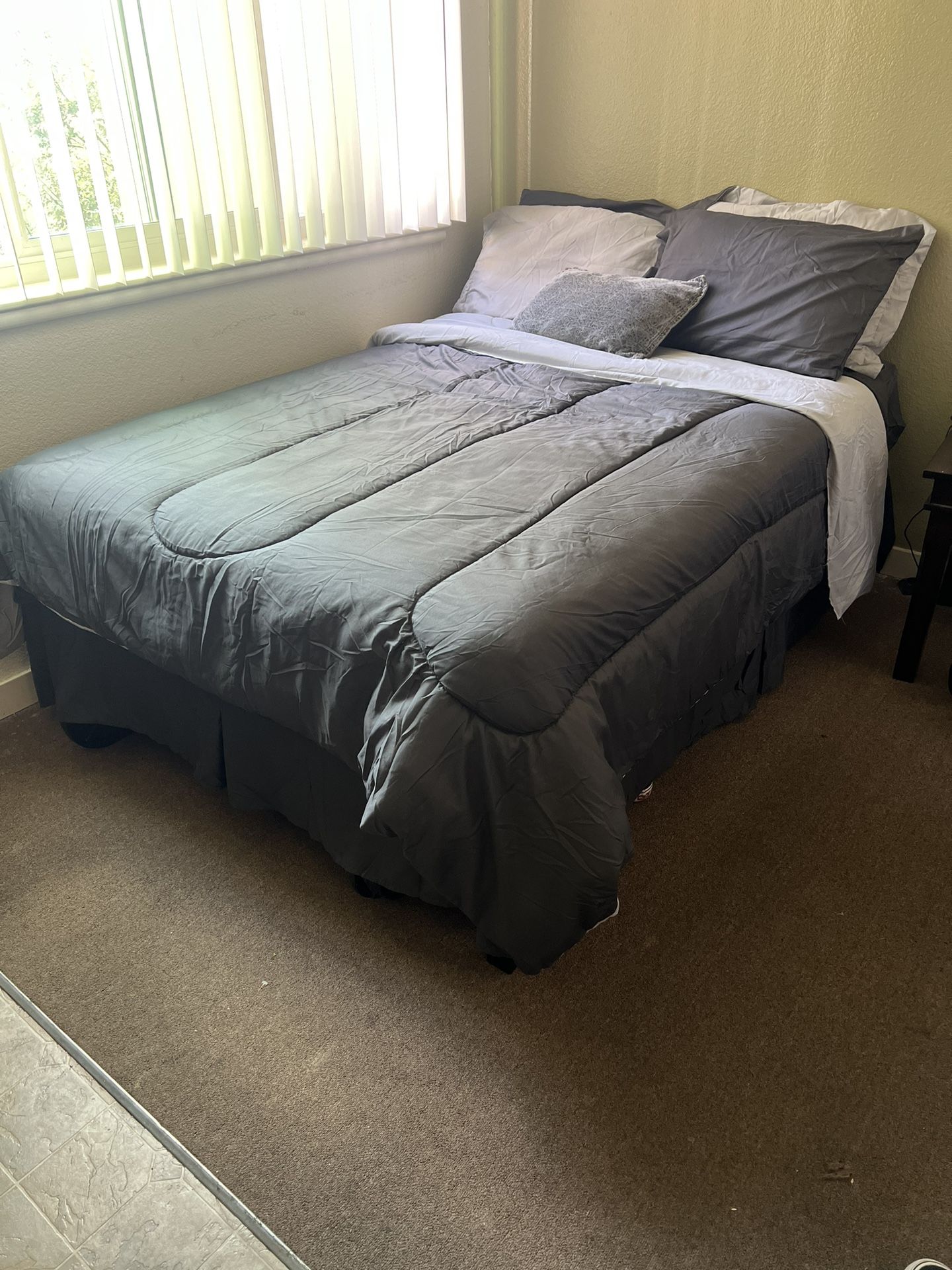 Full-size bed frame and brand new delux Malibu mattress. I purchased this bed from Ramos furniture on 9/18/23, slep in it one time. Very comfortable, family emergency so I have to leave for a few months. Paid $750 for this a we ago. I will not take less than $400 cash and you must pick up in Sunnyvale.