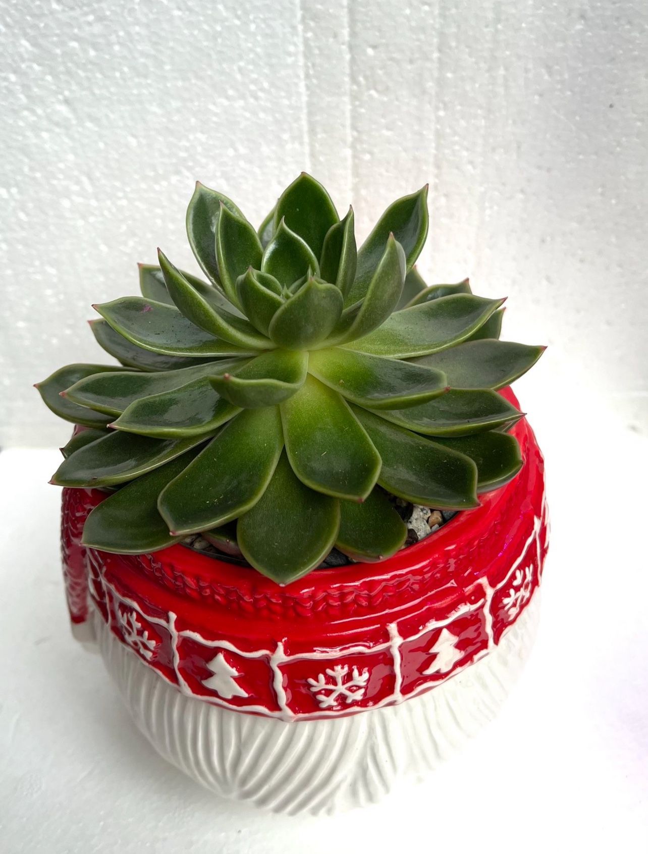 🎄🎁 Succulent Echeveria Lipstick House Plant In Cute Textured Ceramic Pot 4'5" H.