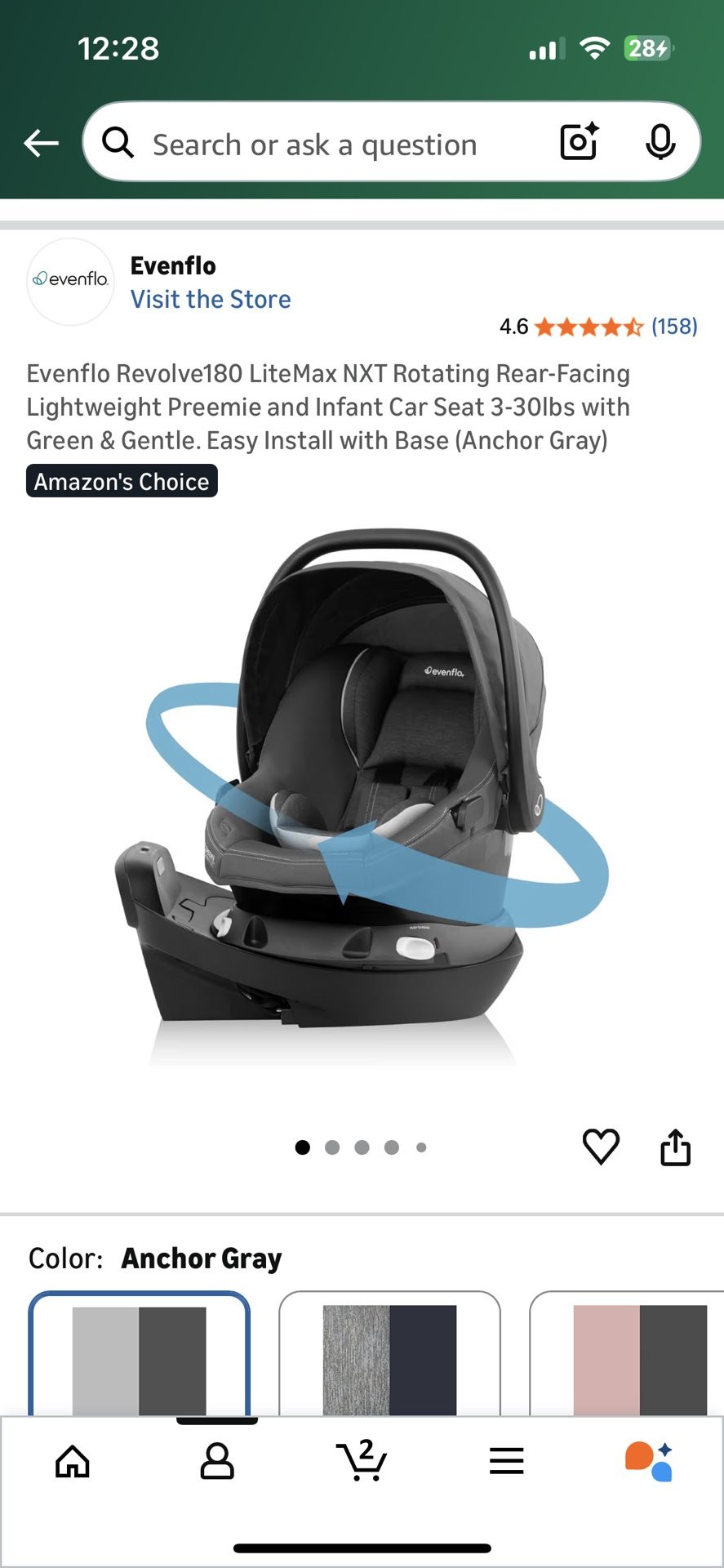 Used once to bring baby home from hospital. In new condition. Rotates on base, included.
