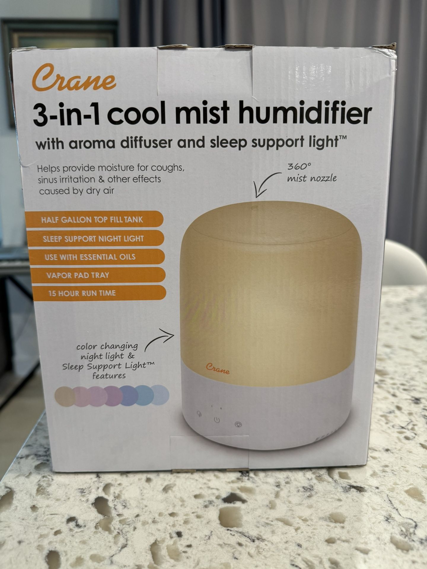 This 3-in-1 humidifier has a 0.5-gallon tank and 360-degree mist nozzle, ideal for small to medium-sized rooms. It comes with a humidifier, a nightlight with seven color options (including a warm yellow light slowly dims over 2 hours to help you fall asleep) and essential oil diffuser. Crane Lavender Universal Vapor Pads, for Use Droplets, Corded Inhaler, Warm Mist Humidifier, Orange, Lavender Orange 12 Count (2pack).