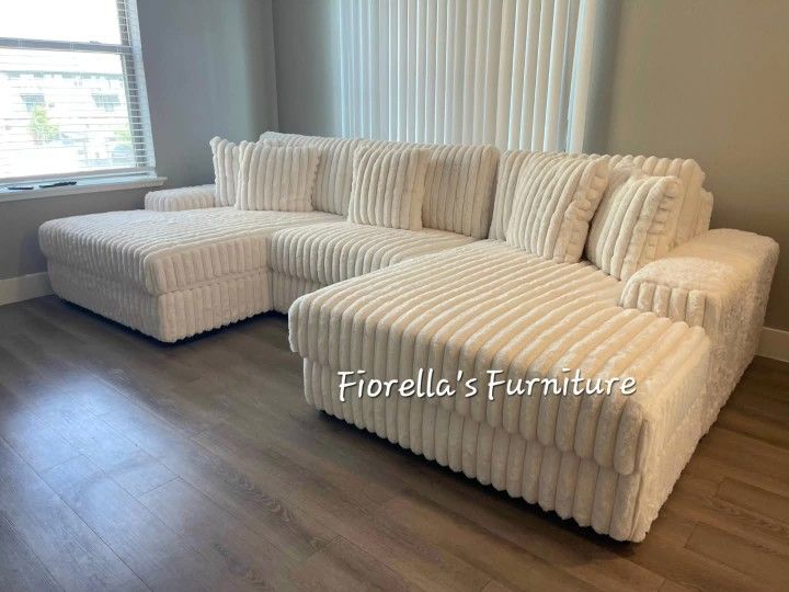 Costumize Ivory Color Fluffy Fabric Sectional Couch Set 🌟 Fast Delivery Extra Discount Code RSG 🔥🔥 Mention OfferUp for this Special Price!!