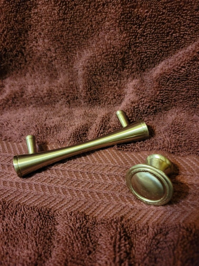 10 pulls and 4 knobs. All new, wrapped in original packages and come with all screws. Pulls are 4" in length. OBO