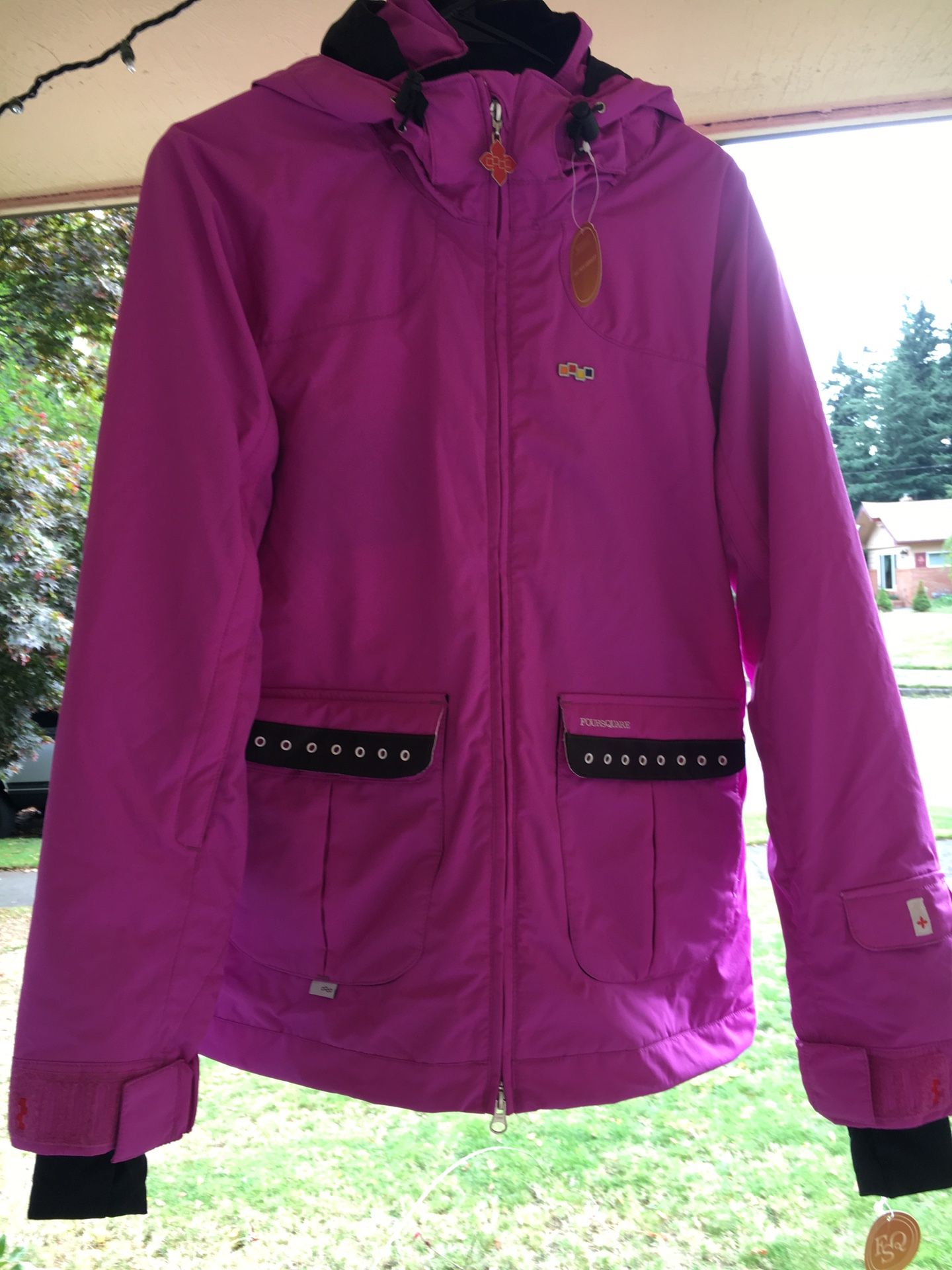 This is a brand new jacket that my daughter never used. It’s a snowboarding jacket but could be used for any cold weather conditions. This was stored in a non smoking home.