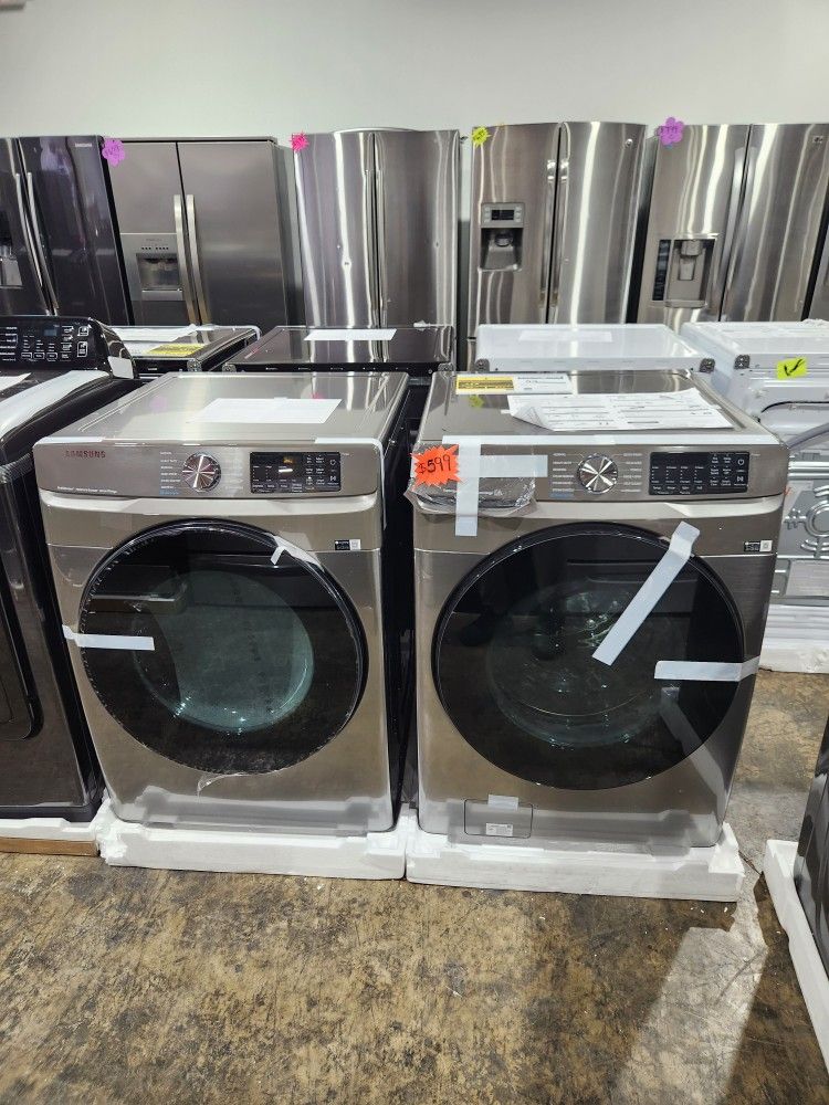 Set washer and dryer electric front door golden Samsung brand new open box