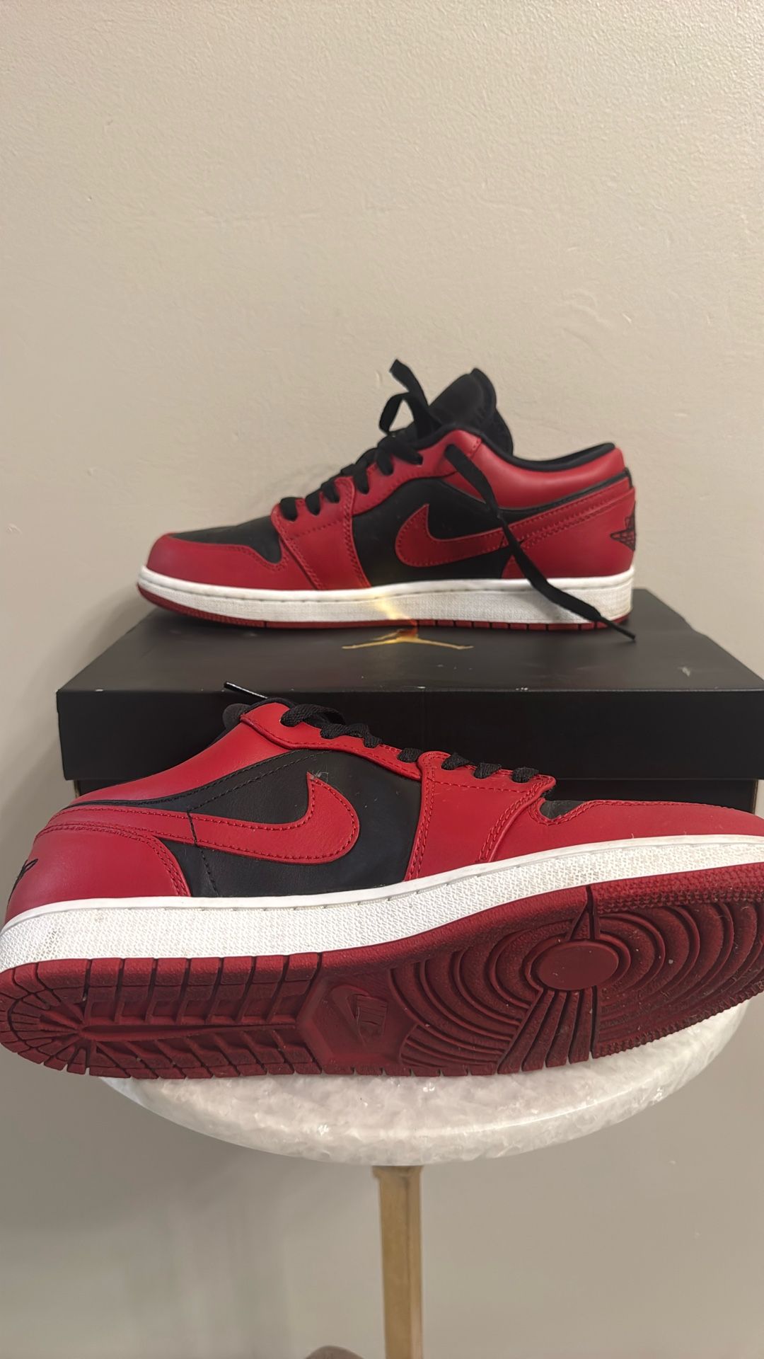 Red, black and white Size 9/5 Worn maybe once Good condition Comes with OG box Bottoms are a bit dirty/ have rocks but I will clean them before shipped out