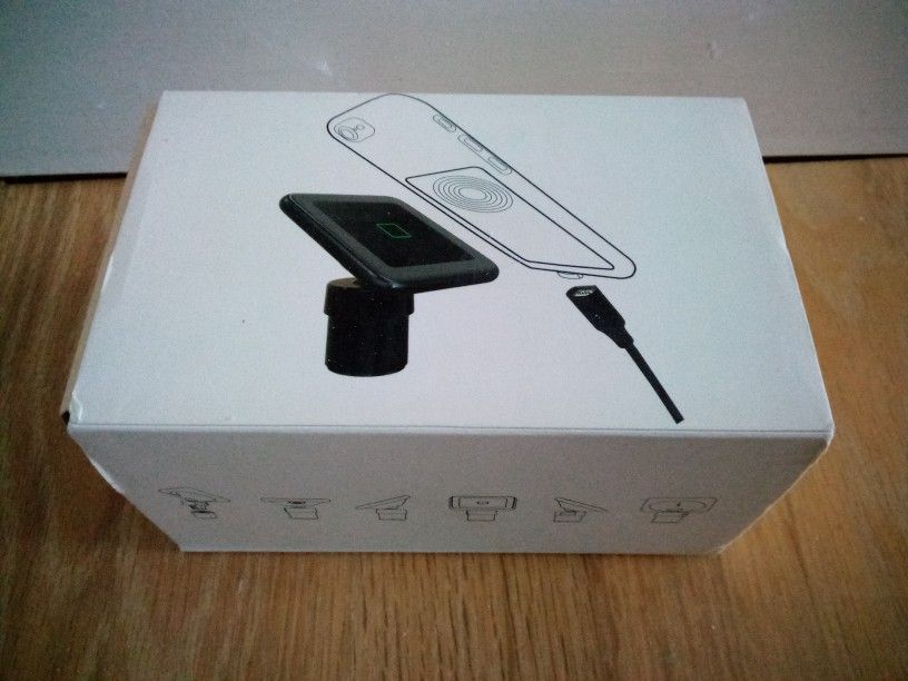 This is a wireless charger and adapter for iPhones with lightning charge port. The charger can be clipped to vents or sticked to flat surfaces. It also has magnets that lines up to the adapter so it's a snap to mount your phone. This is a precursor to Apple's Magsafe. The adapter also has a magnetic charge port to go with a corresponding charge cable. It's gold color in the photo. The charger has a separate charge cable. Brand new sealed. Photo of the open package is mine, that I'm keeping.