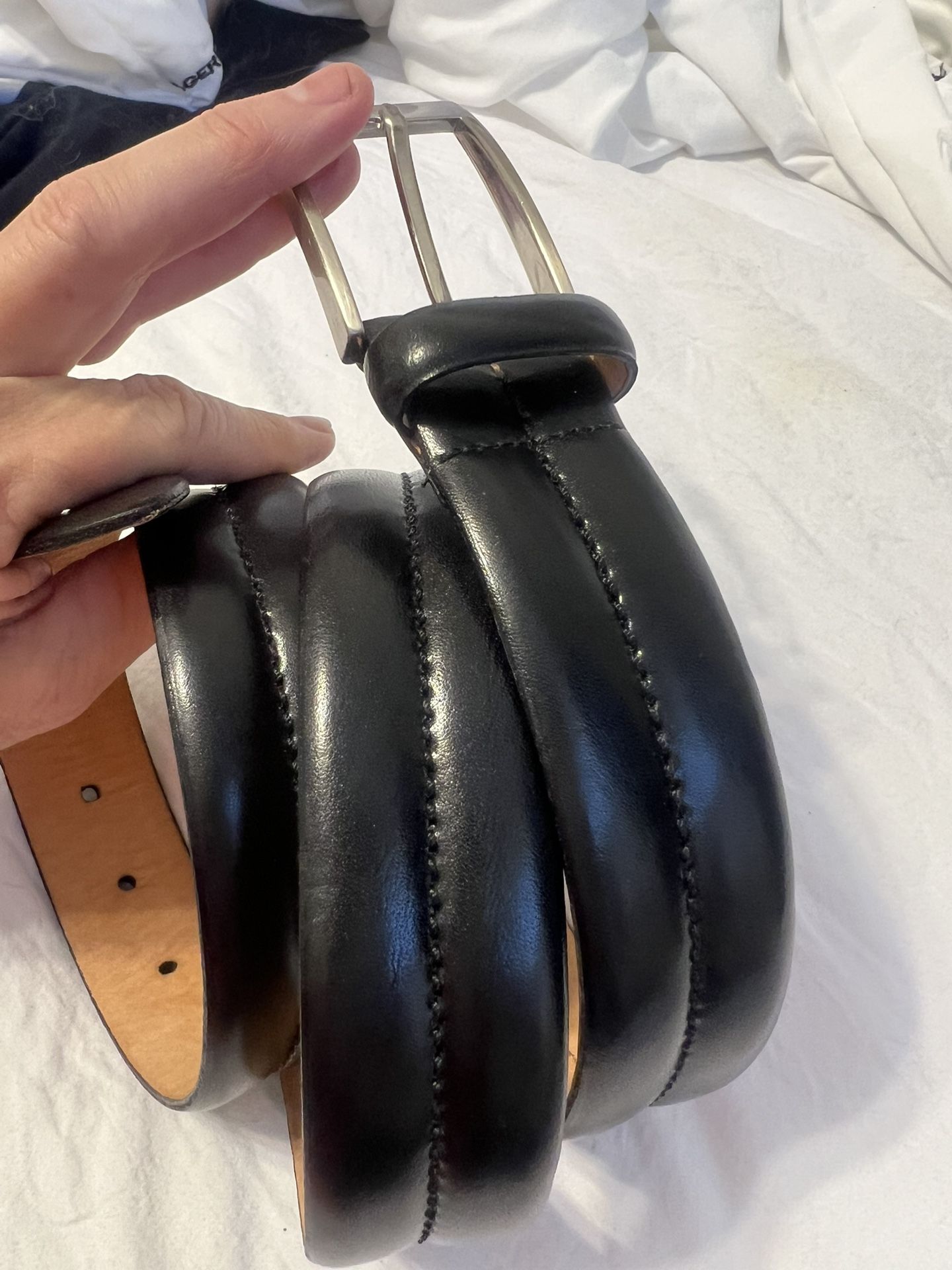 Vintage90’s Handmade Italian Leather Black Belt Silver Finish Buckle Size 40
