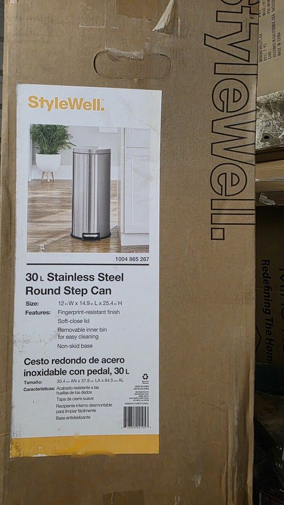 Stylewell 30in round stainless steel garbage can with step on opener pedal
