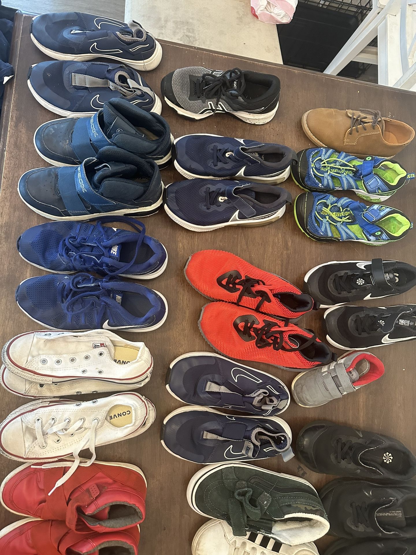 Size 4 Size 3 Size 2 Size 1 I have three young boys so I have bunch more contact me or look at my other items. $20 per pair, less if you buy more The dunks and the Panda’s are more expensive but I’ll work with you