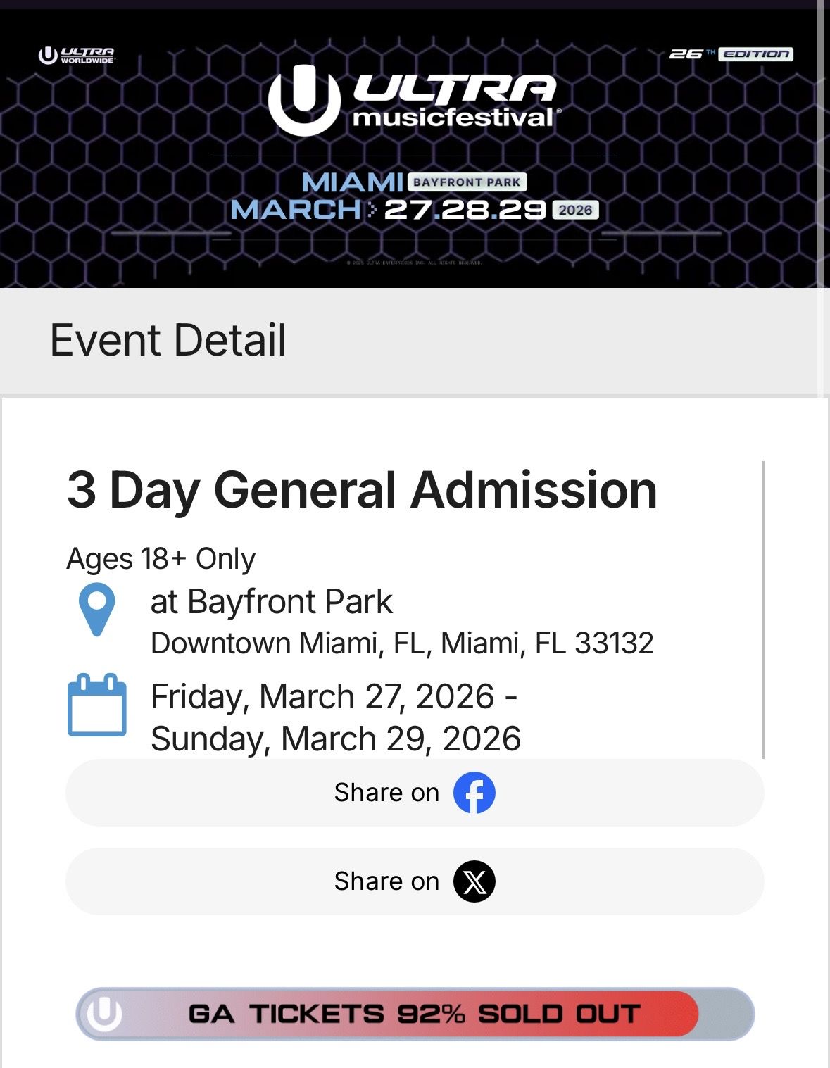 Ultra Miami 3 day GA