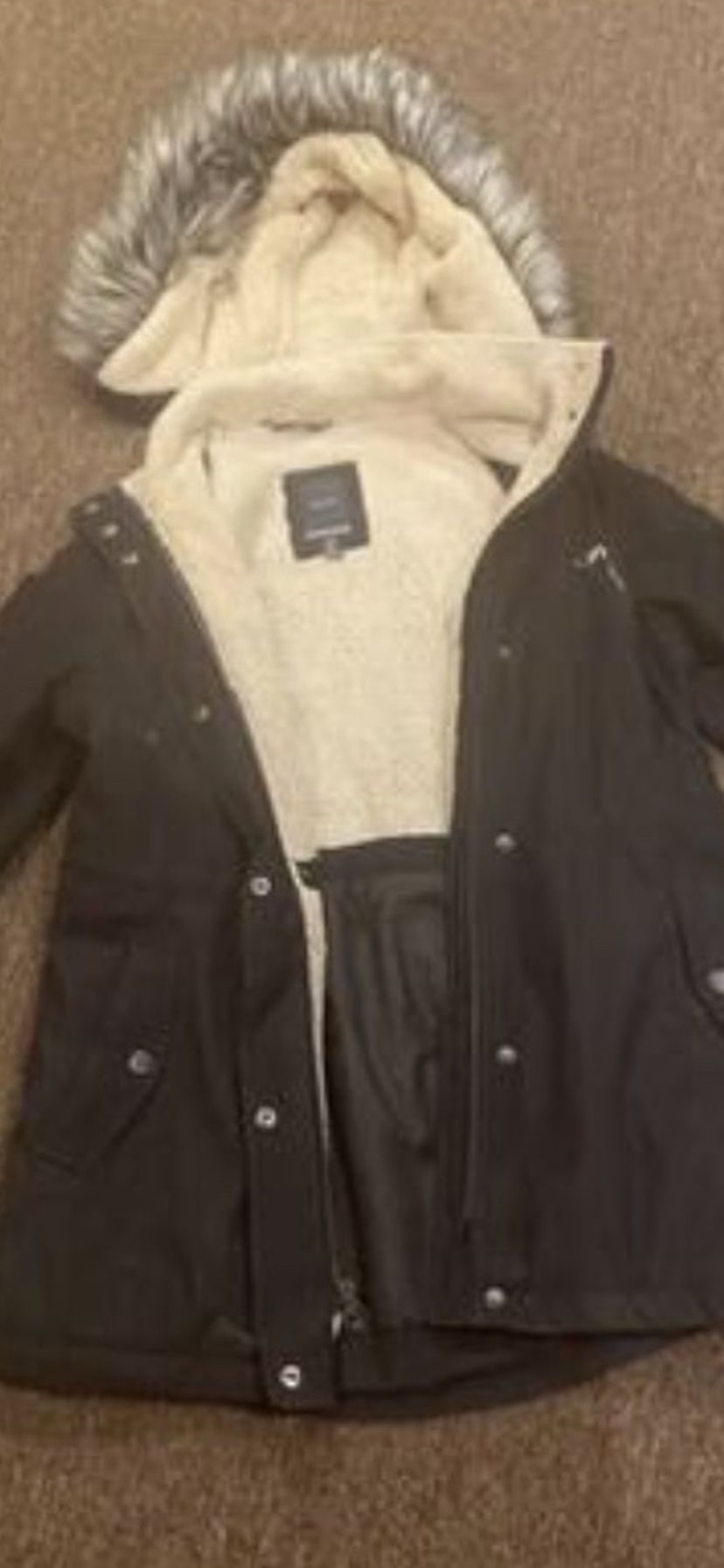 NAUTICA Coat Jacket Fur Detachable Hood Padded Lining Warm Filler Black Parka size Medium