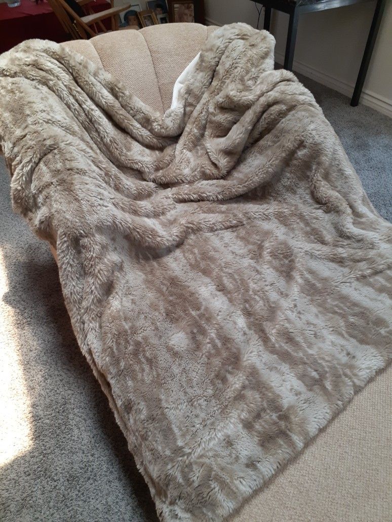 Tan and white faux fur blanket washable , worth $400