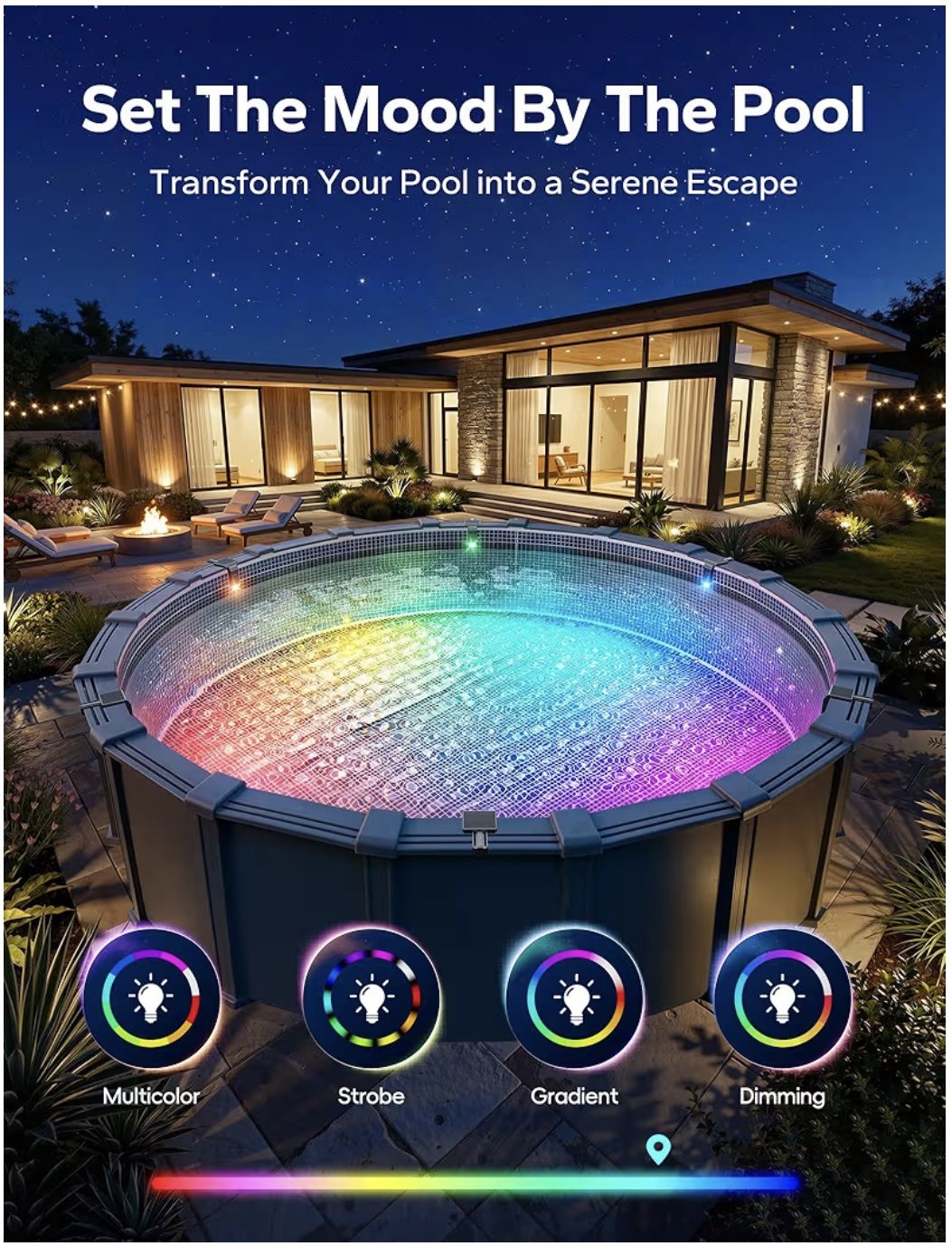 Solar Pool Lights for Inground Pool & Above Ground Pool, 10-Color 4-Mode Pool Lights with Remote, Underwater Swimming Pool Lights with Timer, Waterproof Design.