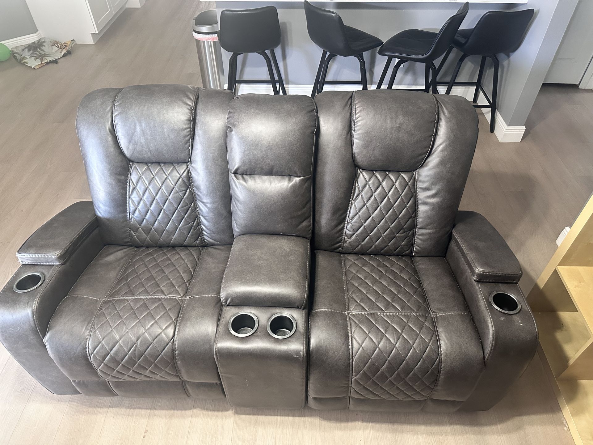 They both have outlets that work. The one couch has a light that doesn’t work and the strut support bar is broken on the arm rest but it does open and close. $350 for both