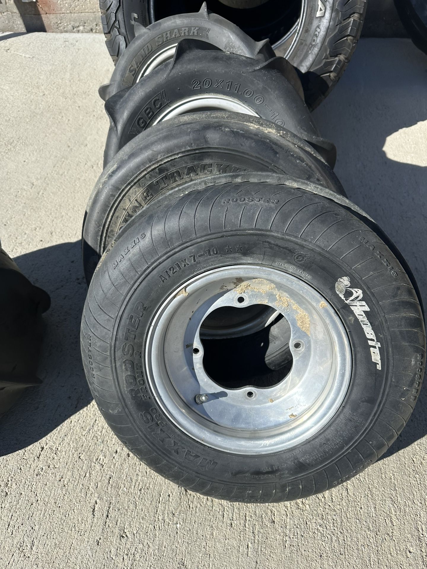 Two sets of rear one set of front . Tires are cracked doesn’t know if they hold are some one rims is bent check pics don’t know what they came off