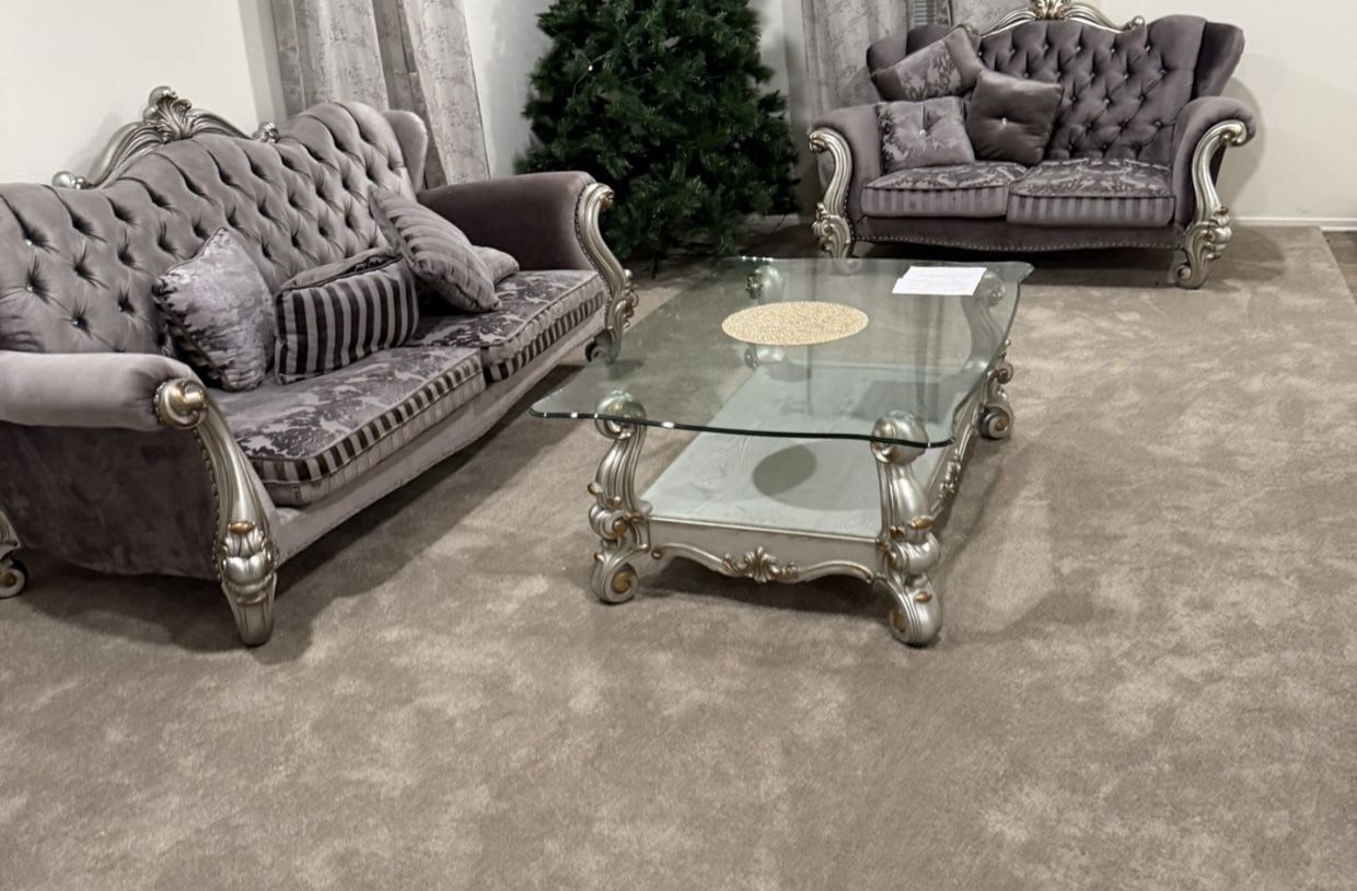 Still New no stains or rips couple small scratches from moving not noticeable, we got a new furnished spot no longer need these , includes both of the couches not glass table ,we could negotiate price but both couches 2,000 each