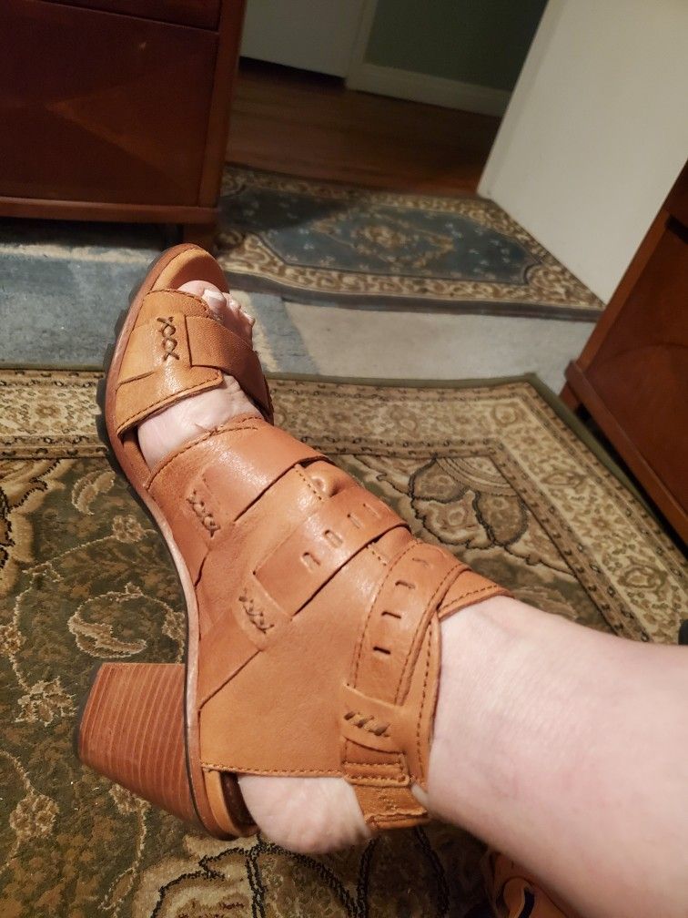 Sorel Brown Leather Strappy Shoes Open Toe Ankle Boots Size 9.5