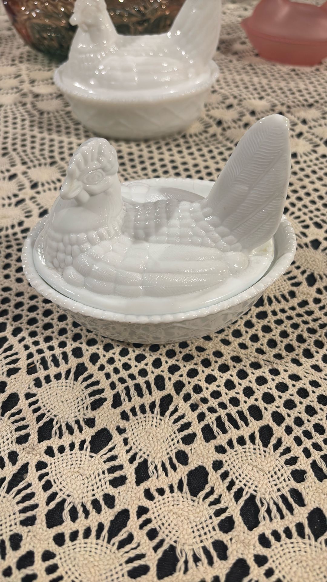 Antique Glass hen milk glass approximately 6” base perfect condition westmoreland glass