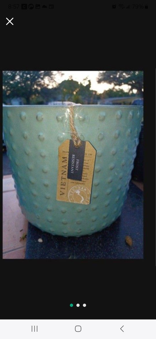 Gorgeous new pot commercial grade thick ceramic 11in top 10" height. I also have pre owned pots. The main event are the awesome plants.