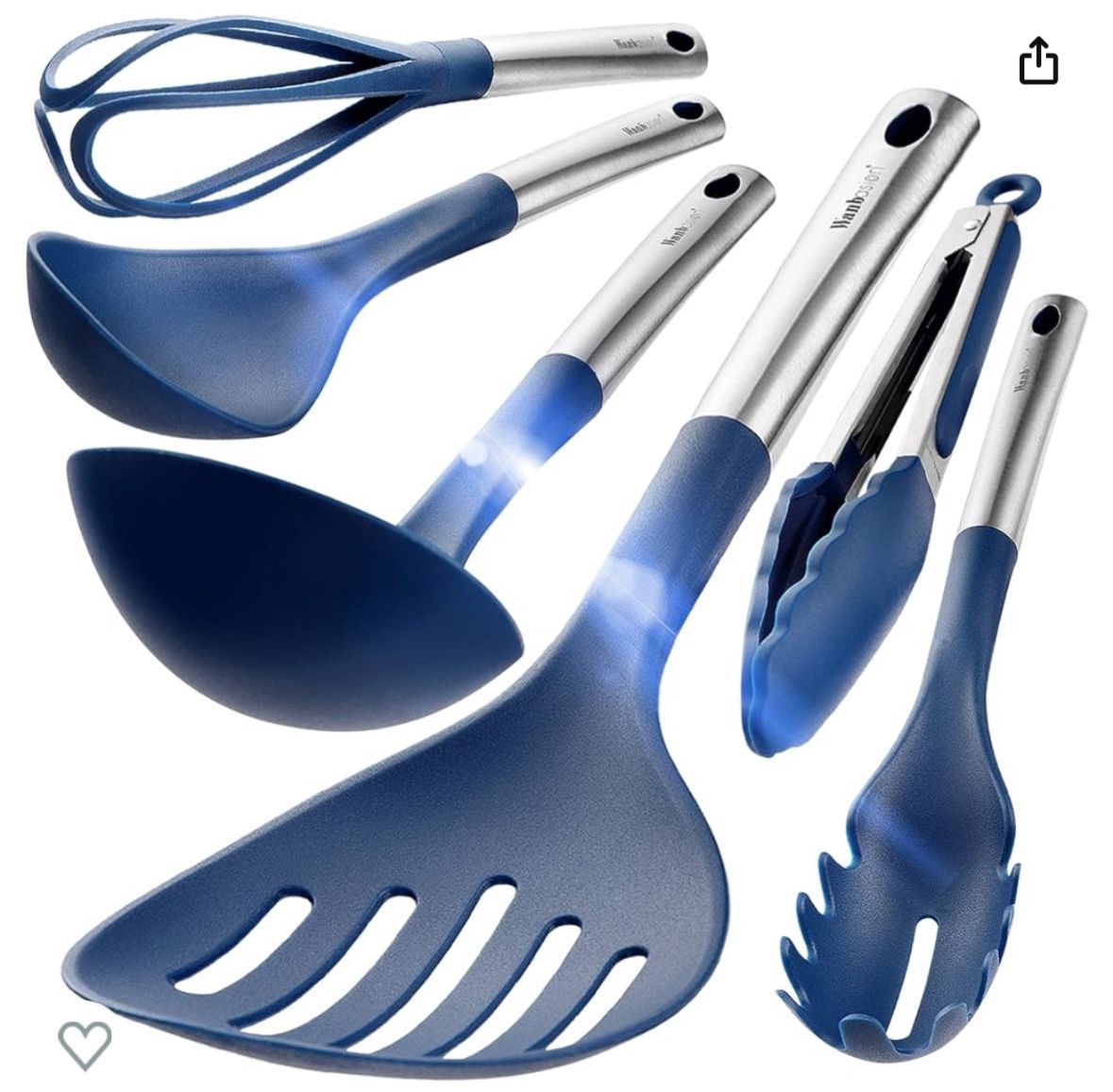 Wanbasion Large Navy Blue Kitchen Utensils Set Stainless Steel, Heat Resistant Kitchen Cooking Utensils, Nylon Kitchen Cooking Utensils Set for Nonstick Cookware