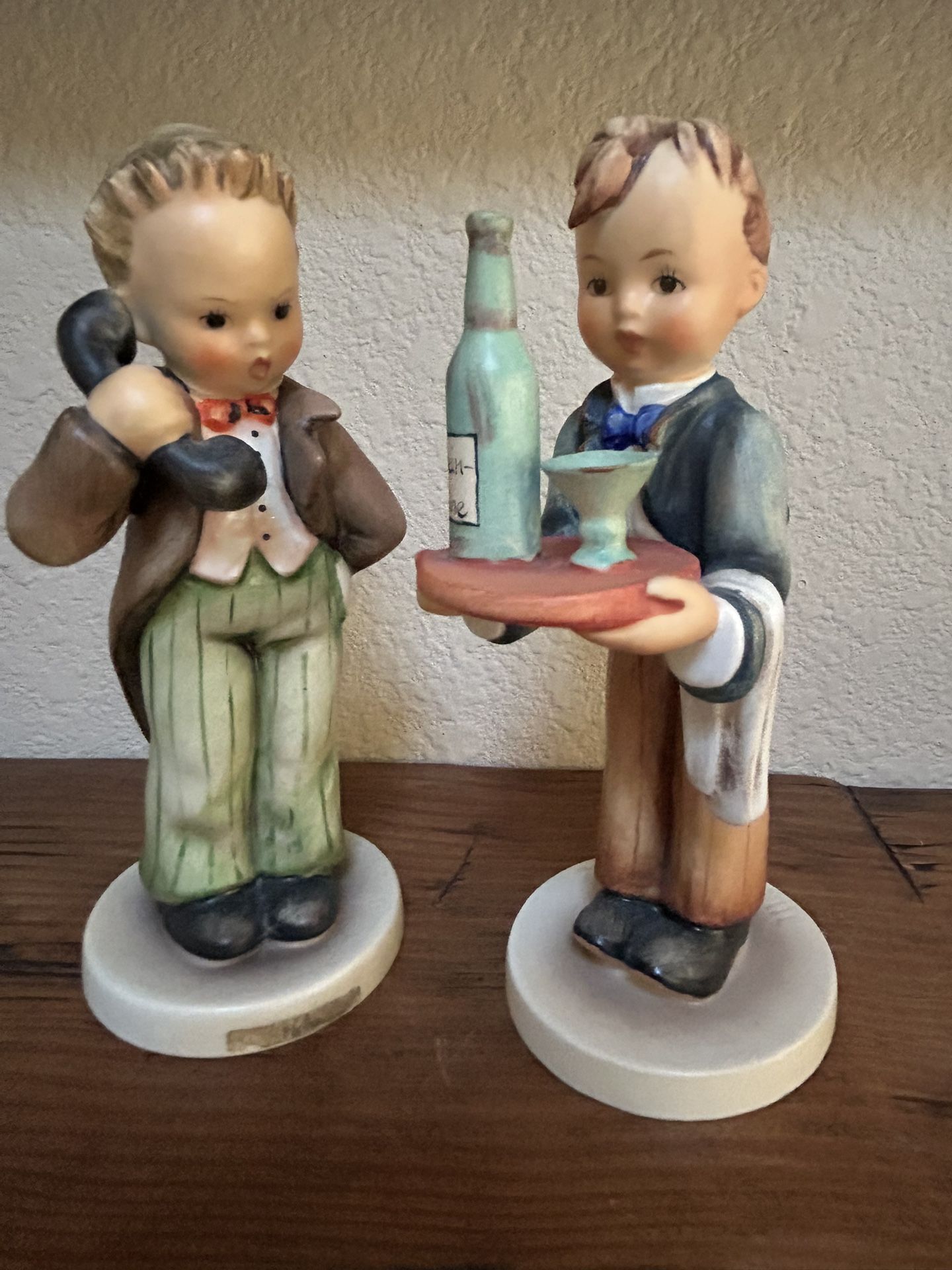 Vintage Hummel Figurine Pair, Waiter & Hello