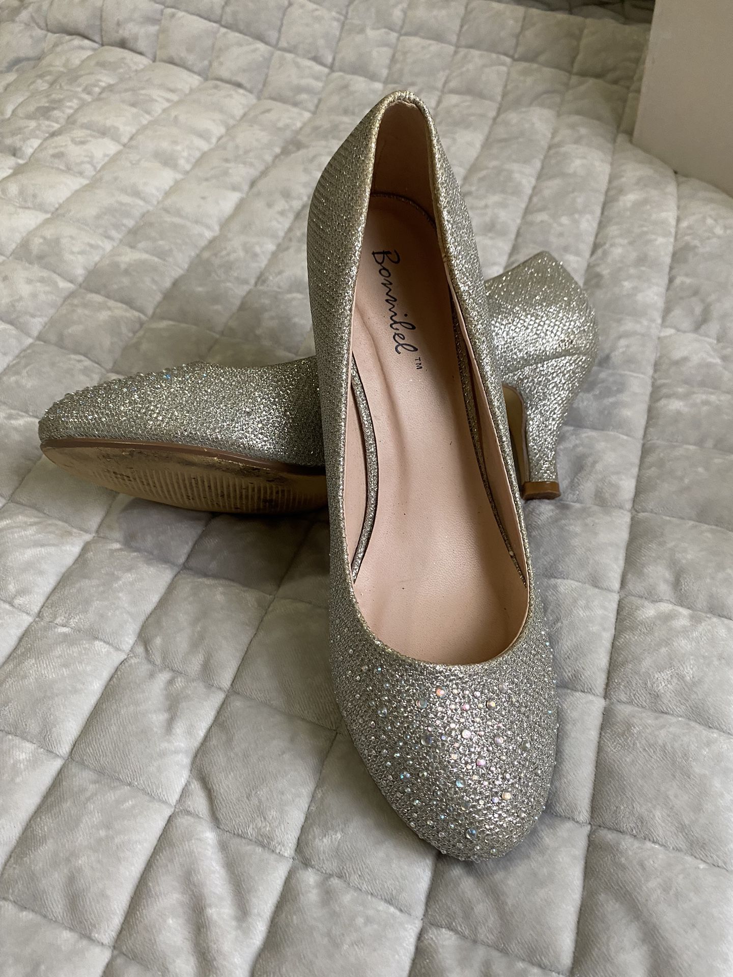 Size 8.5. Only used for a few hours for city halls. Silver sparkles. 2 inch heel See my other items quince X5 15 wedding weddings elope elopement engagement boda matrimonio