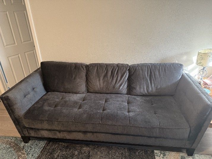 Long couch that can for up to 4 people. Deep seats. Great for napping. Still in good condition.