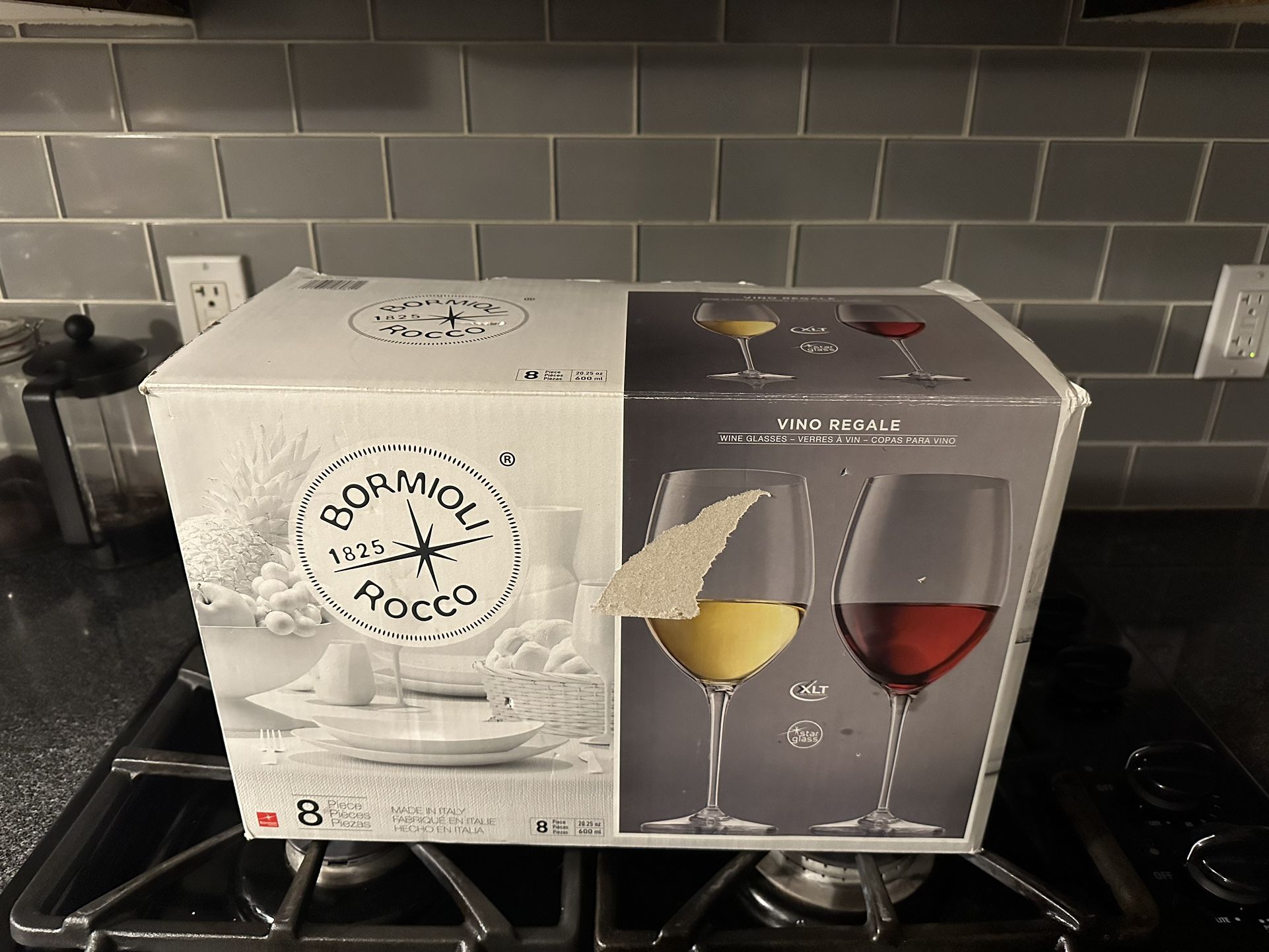 Bormioli Rocco Vino Regale glasses, set of 8 Never used Box is a little bit beat up