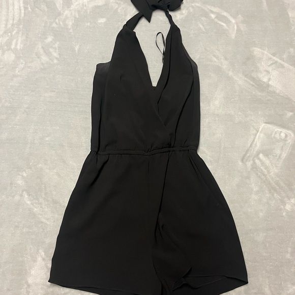 Stylish and comfortable black halter romper. Perfect for any occasion. Super cute!! Size extra small and only wore once, in great condition
