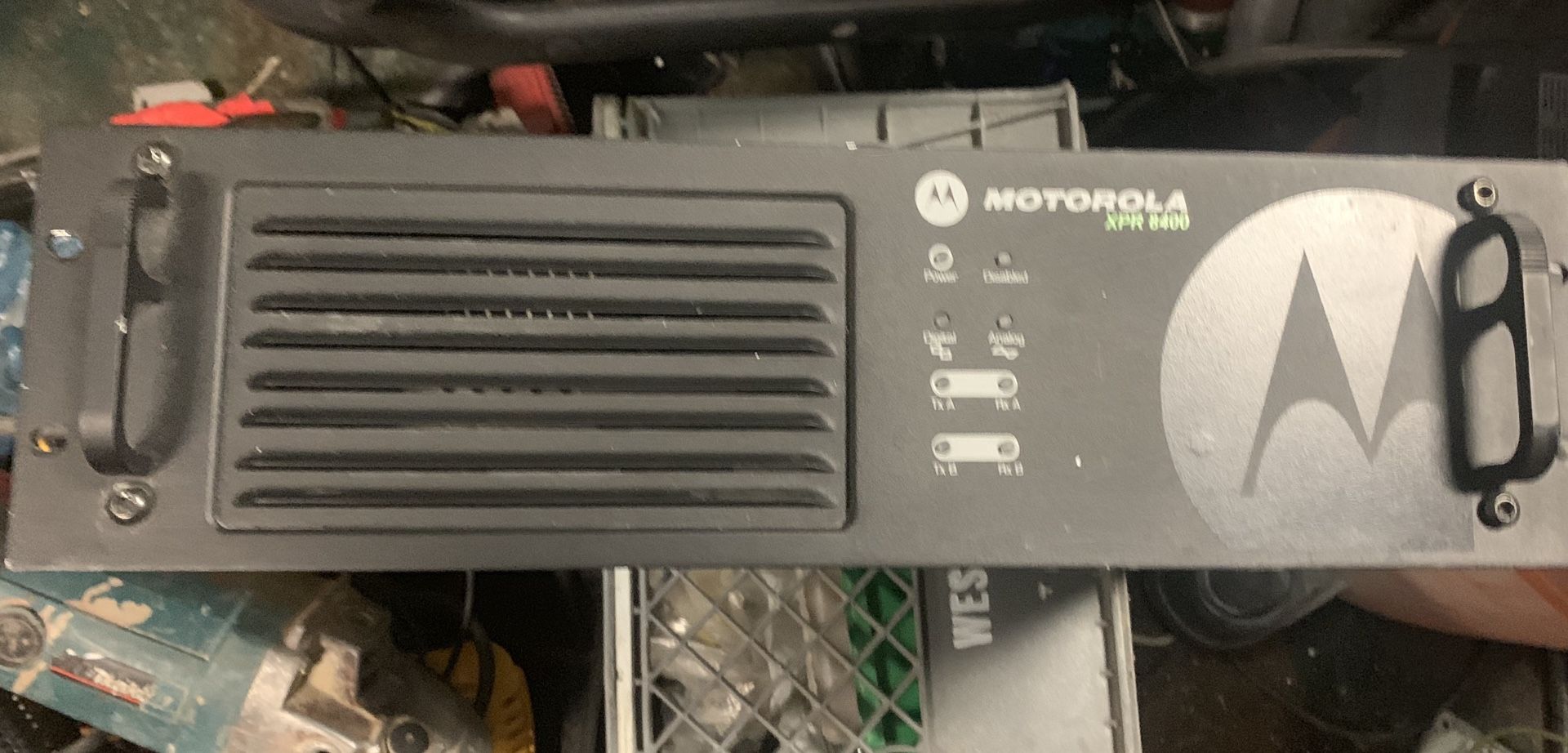 MOTOROLA XPR 8300 FEATURES: ▪️100% continuous duty at 40W/UHF, 45W/VHF and 35W/800 MHz. ▪️Supports two simultaneous voice or data paths in digital TDMA mode. ▪️Integrated power supply with connector for optional external DC battery backup. ▪️Operates in analog or digital mode – bright, clear, colored LEDs indicate mode. ▪️LED's clearly indicate transmit and receive modes in both channel slots. ▪️Rack- or wall-mountable – compatible with desktop housing as well. ▪️Sturdy handles make installation and handling easier. ▪️▪️ADDITIONAL FEATURES▪️▪️ ▪️Automated battery back-up (battery sold separately) ▪️Operates in UHF, VHF or 800/900 MHz frequency bands ▪️6.25e Compliant ▪️Dynamic mixed mode capability allows for automatic switching between analog and digital conventional modes ▪️Repeater diagnostic and control software provides remote or local site monitoring ▪️IP repeater programming uses Internet Protocol (IP) at a central location to complete programming changes and upgrades on remotely located repeaters