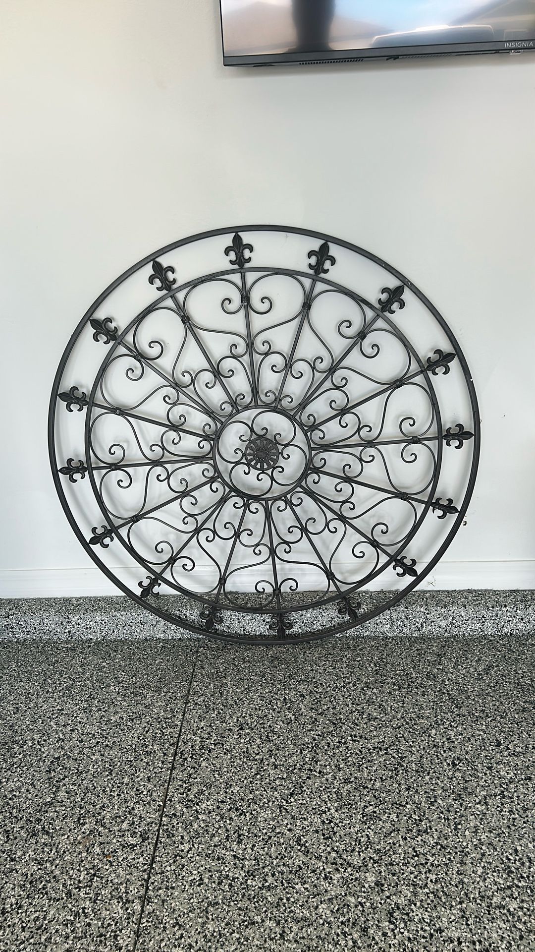 Large circular wall hanging, metal material, 42” diameter.