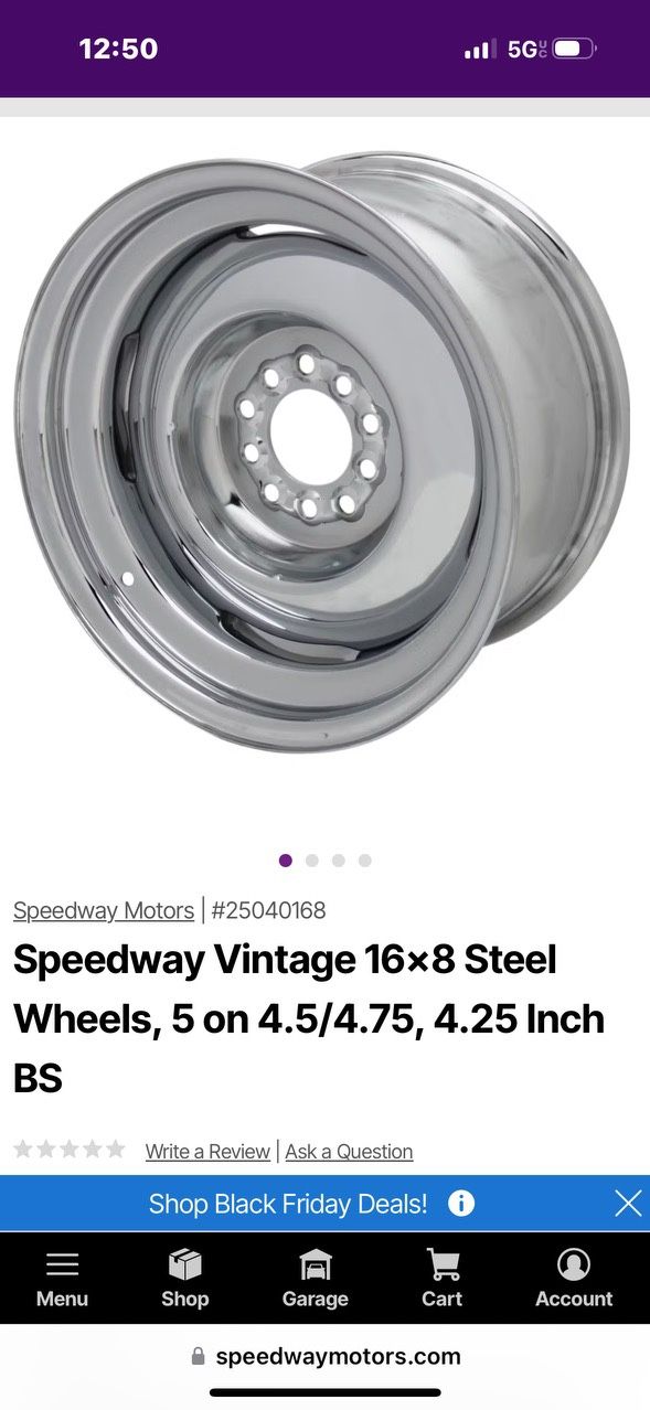 New Speedway Vintage 16x8 Steel Wheel 5 On 4.5/4.75, 4.25 inch BS 4 new rims $260 each one Obo Hablo español Text me for more info
