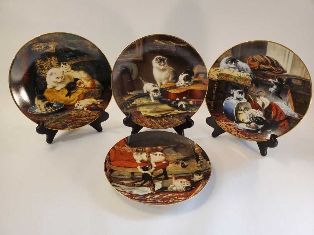 FRISKY FELINES COLLECTOR PLATES BY HENRIETTE RONNER Set of 4 numbered. 3 holders