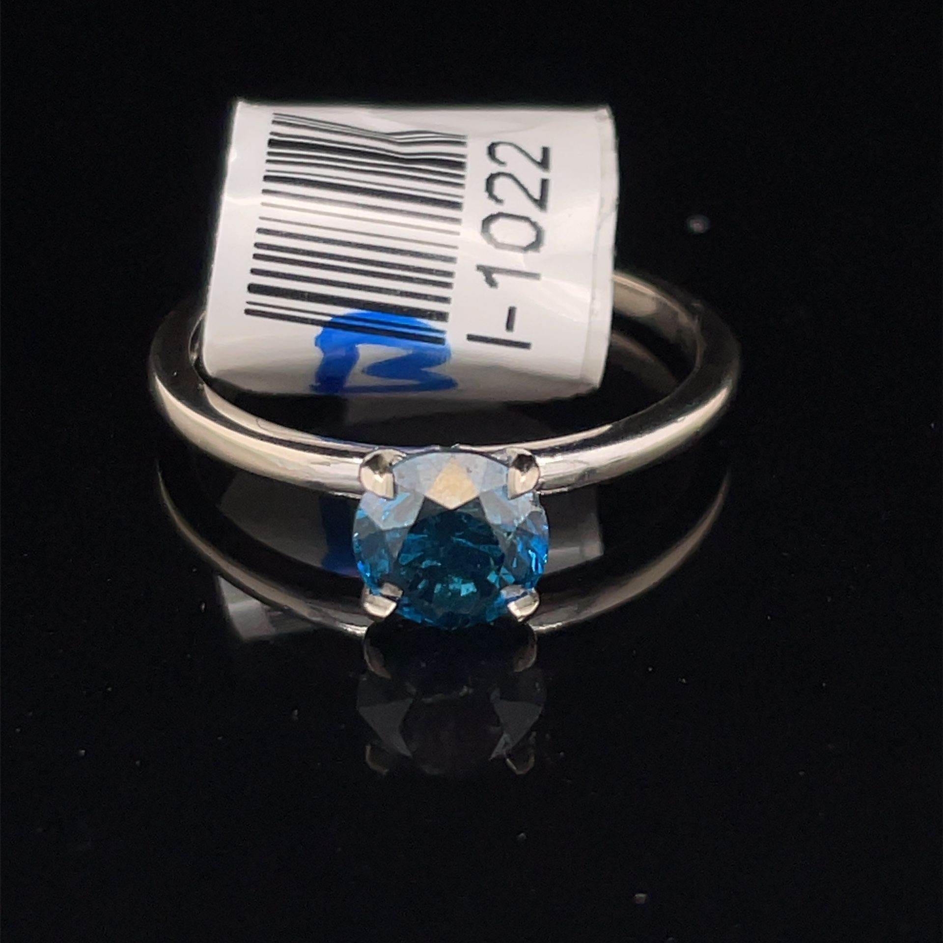 14KT White Gold Blue Diamond Ring 2.05g 1CTW Size 7-1/2 I-1022