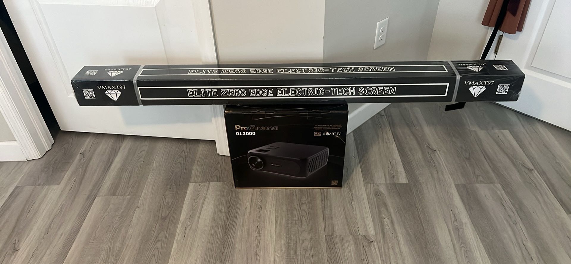 Proyector Pro Cinema QL3000, Y Élite Zero Edge Electric-Tech Screen