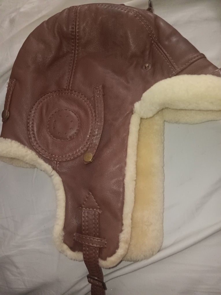 Cozy up with this stylish leather trapper hat! It features a warm faux fur lining, perfect for those chilly days. The hat has a classic design with buckle detailing and ear flaps for extra warmth and protection from the elements. It's in great condition and ready for a new owner!