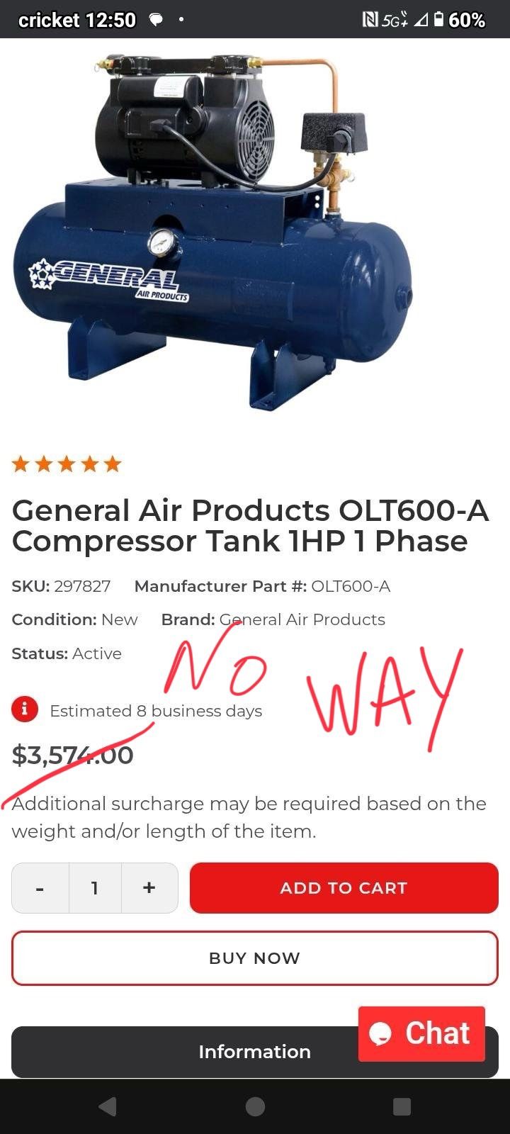 For sale is a General Air Products OLT600-A Compressor Tank (1 HP / 1 Phase) in perfect working order — barely broken in and meticulously maintained. Ideal for shop, commercial, or industrial use where a reliable compressor is required. The current retail price for this model exceeds $3,500 USD new. • Heavy-duty build with quiet, efficient motor • Includes integrated pressure gauge and safety valves • Mounted on pallet for easy transport • Local pickup only – no shipping due to weight and size Location: New Orleans (near Bienville St.) Price: 💲2,250 OBO (Local Pickup Only) Condition: Excellent / Barely Used Contact: Reply via Craigslist / OfferUp / Facebook or call/text for viewing appointment.