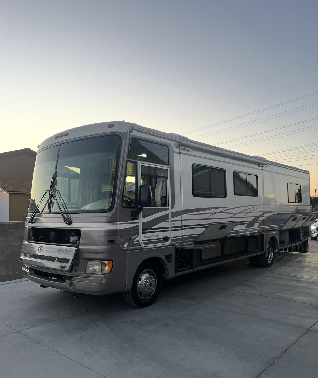Selling our 1999 Fleetwood, 36 ft class A RV -with brand new Jasper Transmission. Ford Triton V10 engine - 87 fuel- Has under 60K in miles. 2 slide outs- just passed emissions Re-did entire interior, New Couches, bed, toilet, backsplashes. All brand new spark plugs, batteries, tires and more. Serious Inquiries only