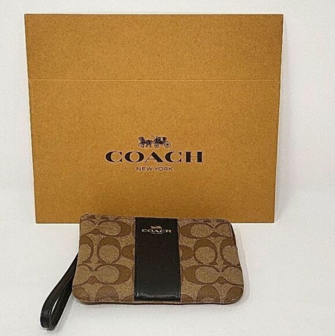 Coach Signature Wristlet Wallet Brown Black β Brand New With Box β Authentic