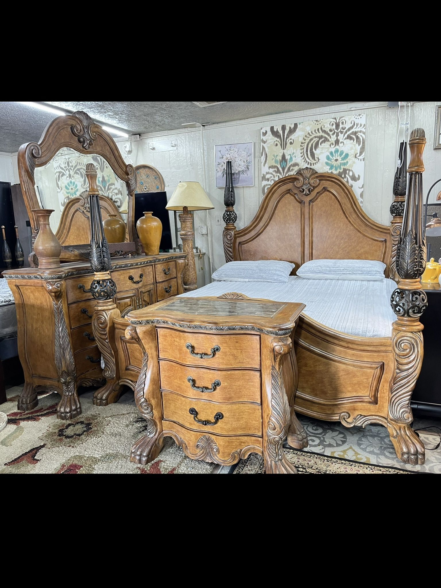 King Bed Frame with dresser mirror nightstand