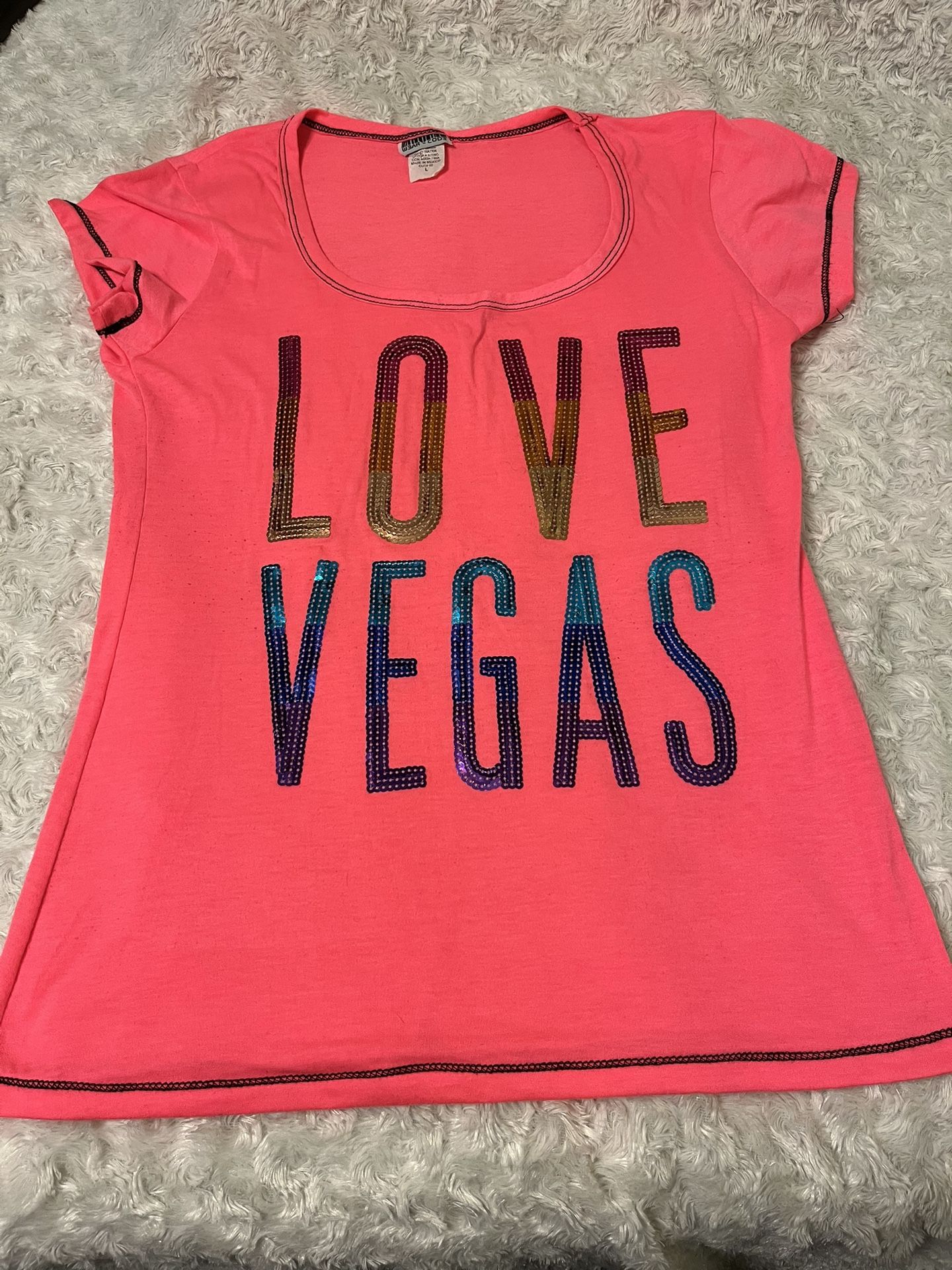 Fuscia Colored “Love Vegas shirt, Sz. L