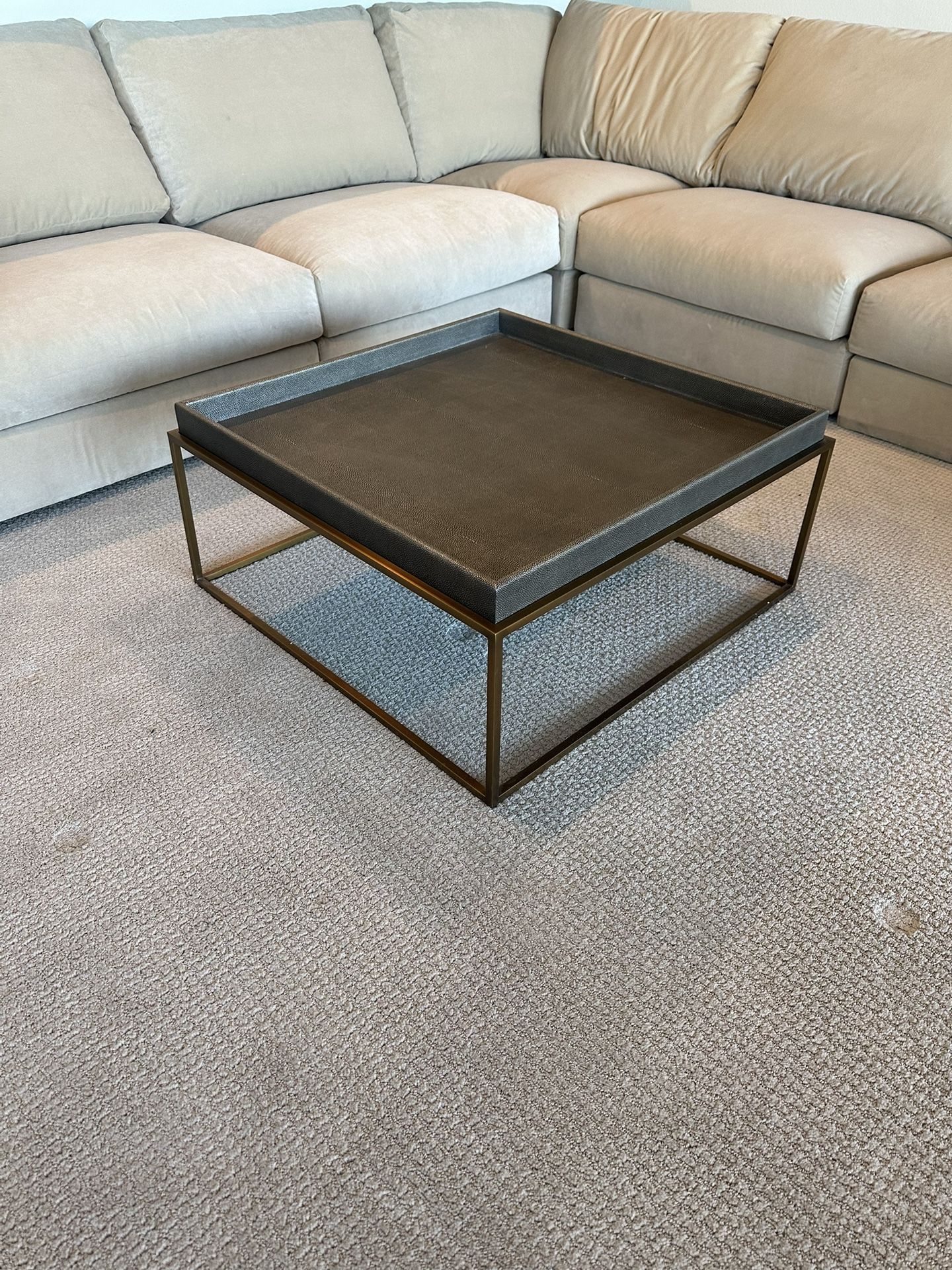 ++please expand & read full description Used but Like New Restoration Hardware Hudson shagreen tray Coffee Table. I’ve used this coffee table in several staging projects and it’s always been a beautiful piece that fits perfectly. It’s 32”x 32” square with a tray style . The shagreen which is leather stingray from rh is uber rich and elegant if you’re familiar with the collection. Legs are brass. This collection has clean lines and sleek. It’s very much Modern. It’s not super heavy. please bring blankets and straps. If you need help transporting I can recommend movers I frequently use. They’re very reasonable compared to any other movers. Selling for $850 firm It’s in excellent condition We paid over $2900 NO SCAMS/ CASH ONLY AT PICK UP! pick up in southern highlands 89141 Off southern highlands pkwy & cactus I do have a few other pieces from rh as well as the matching rh Hudson tray side tables if you’re interested . PLEASE DO CHECK OUT MY OTHER LISTINGS !! Brand: rh Collection: Hudson tray shagreen coffee table Color: smoked grey shagreen/ brass Size: 32” x 32” square Dimensions: 32" Table: 32" sq., 14"H Weight: 31 lbs. Please do check out my other listings