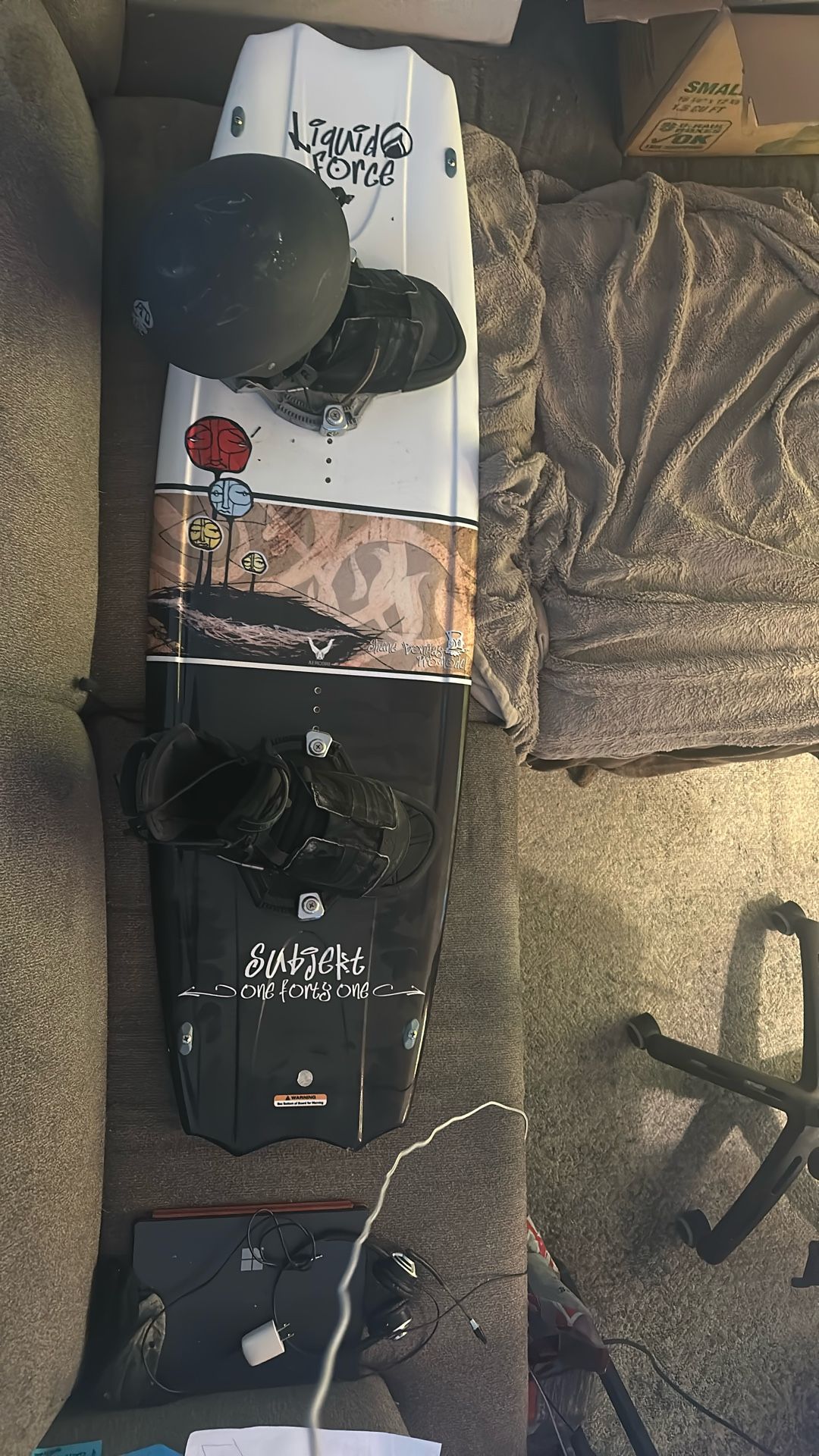 New liquid force Subjekt wakeboard. 141 with helmet. I bought it and never used it because I started to wake surf. Super clean, helmet included. Bindings included too.