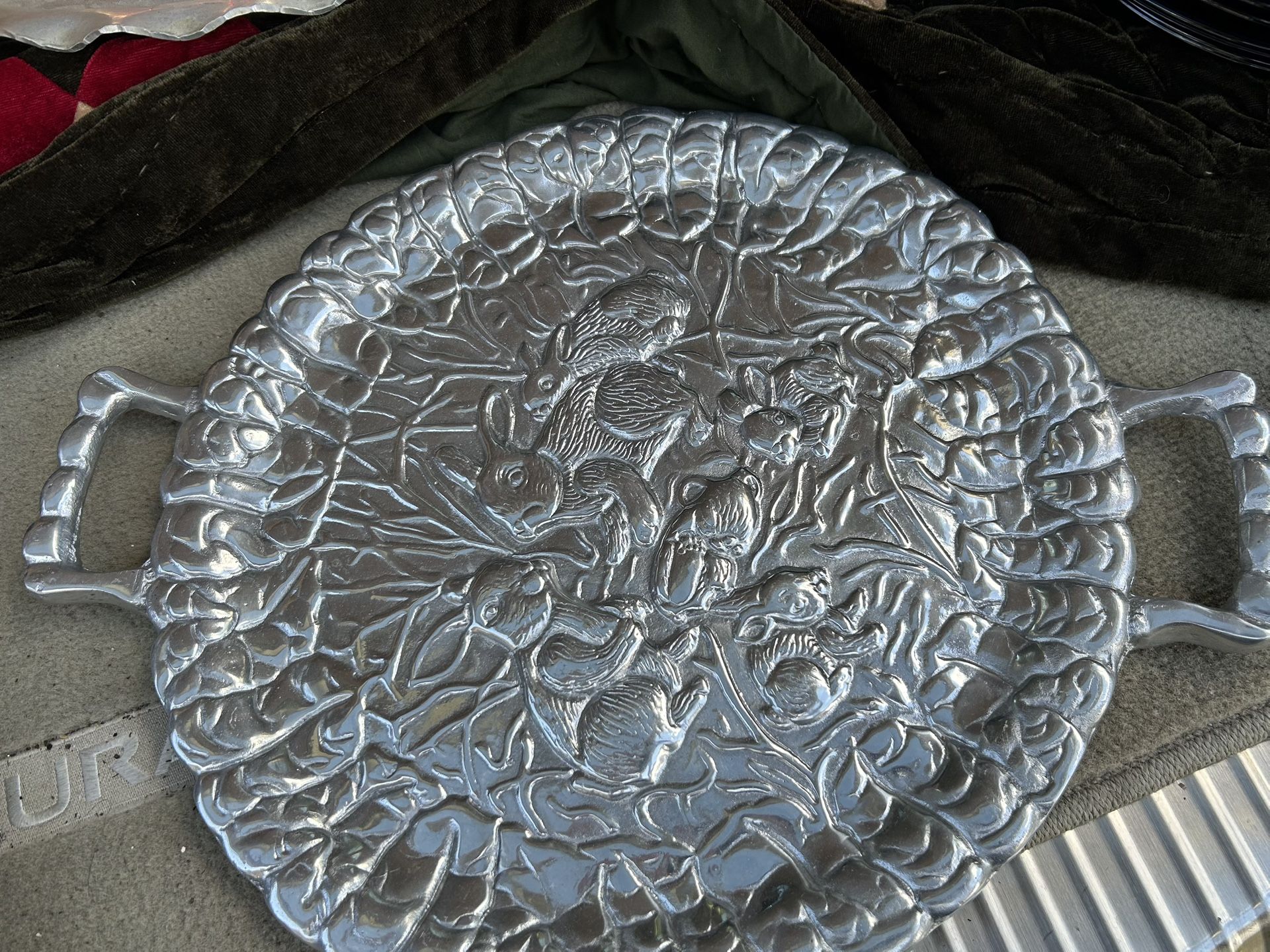Large Heavy Silver Rabbit Platter