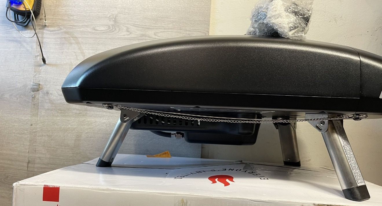 Open box - never used —— NO BOX Model: ORA 12 12 inch Outdoor Pizza oven 122.7 sq ich 14000 btu main burner total cooking power Weights: 35.3 Ibs Measures: 9.33 in H x. 24.8 in D x 16.73 in