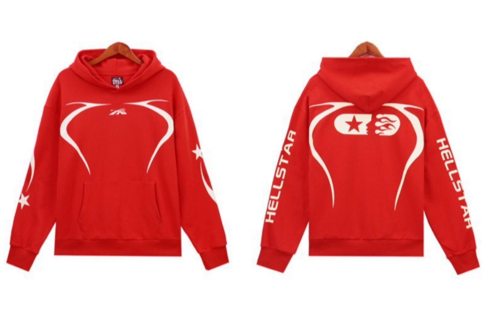 Hellstar Hoodie Chrome Red Hearts Pill Logo Denim Jeans Tears Pullover Hooded Jacket Small S Medium M Large L XL