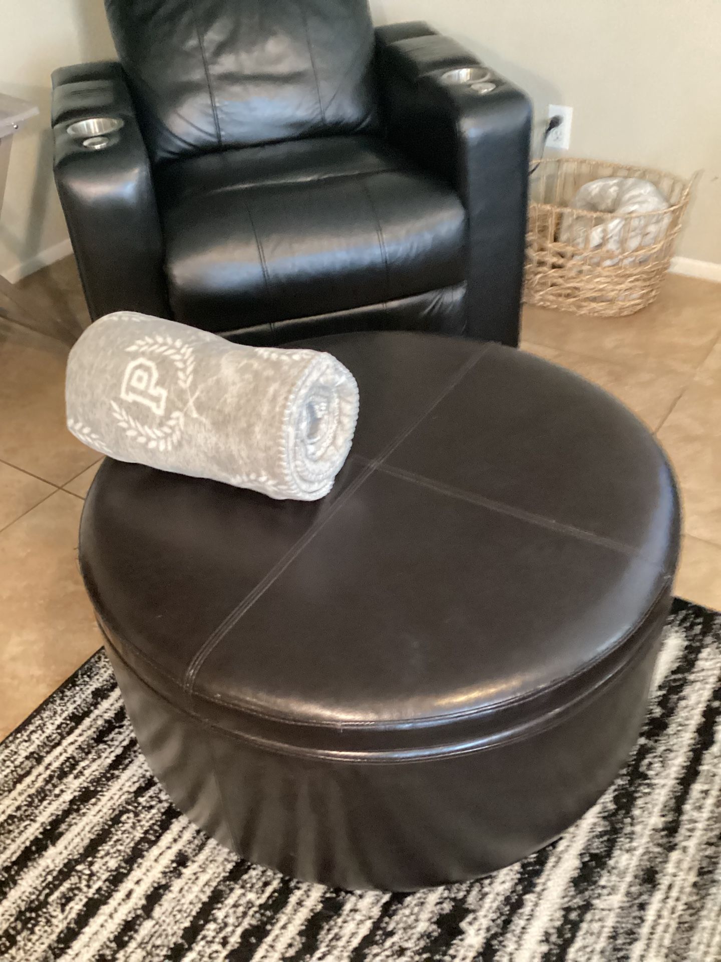Beautiful yet functional space saver coffee table and ottoman 31”diameter 16” tall