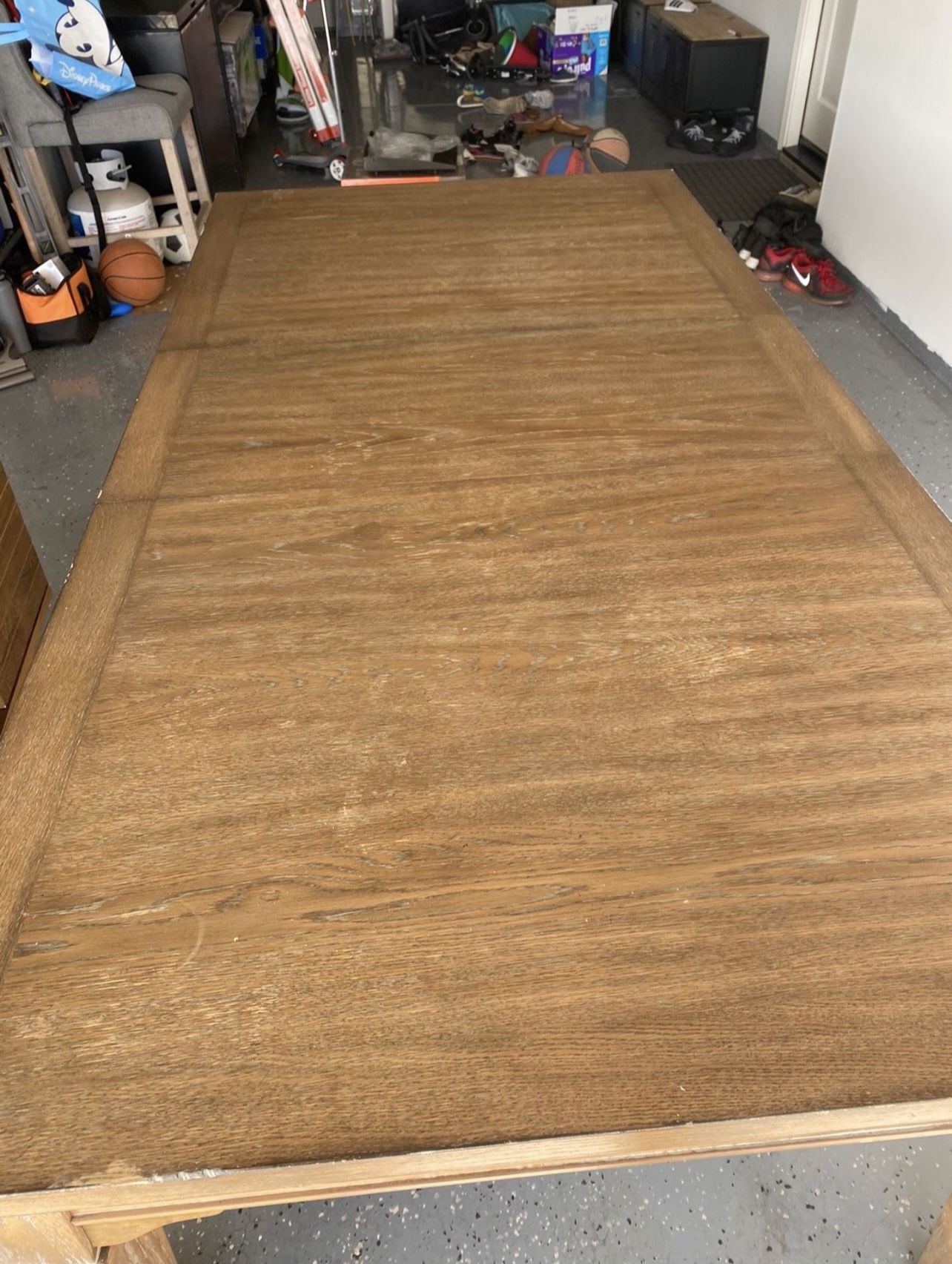 Distressed Dining table (distress design) with removable leaf. Selling for $250(make me an offer I can’t refuse. I need to get rid of it ASAP) Height 30.5 inches Total length with leaf 84inches, 66inches without leaf. Width 42 inches