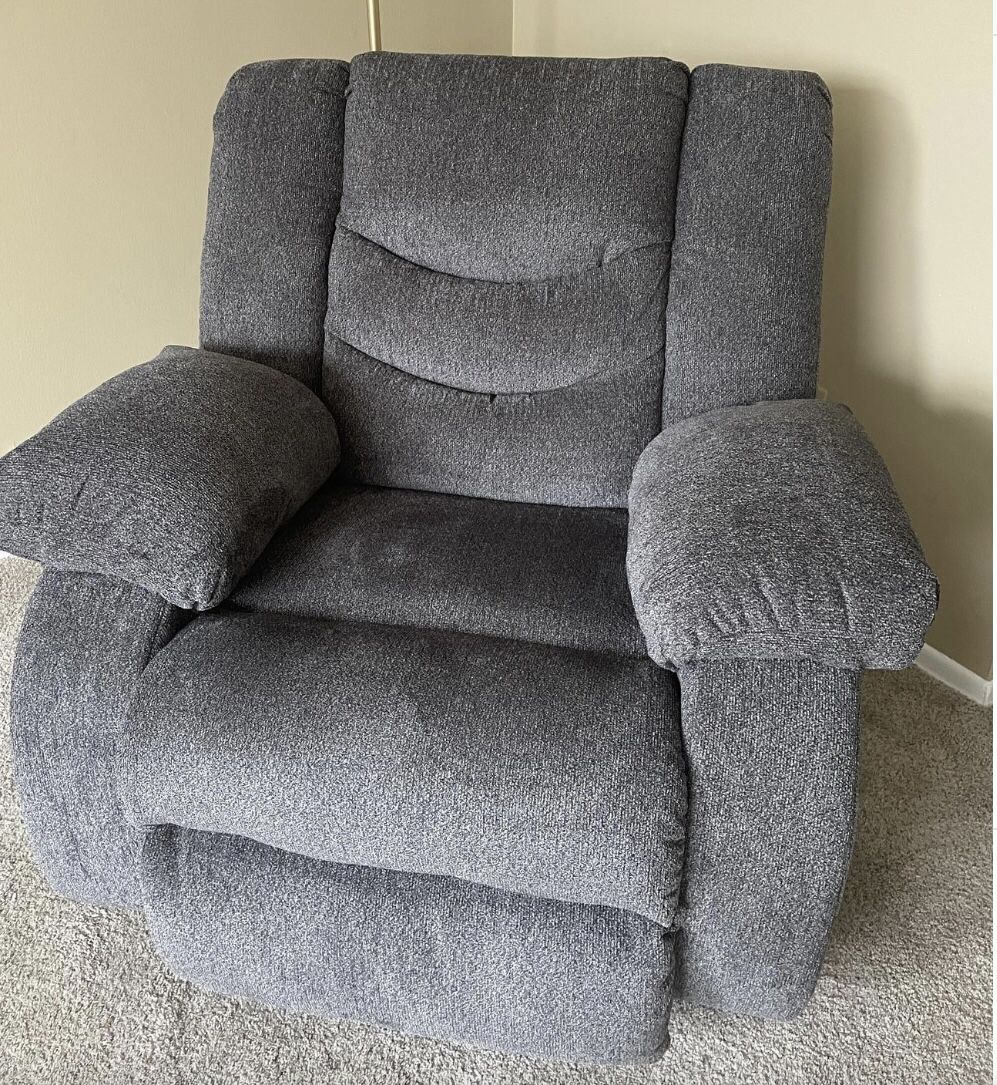 Southgate rocker recliner. Beige brown color, or light brown - last pic shows a close up of the material color. This chair has ample seating room, the backrest slides out of the seat making transport easy. Bought in May getting a better one from family for free. $200 cash only.