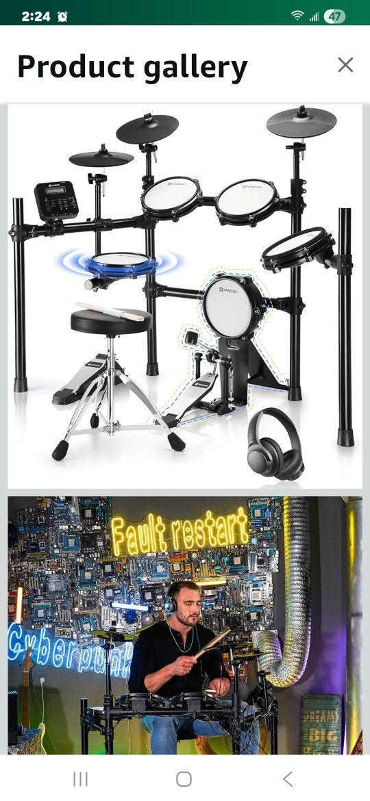 Vangoa Electronic Drum Set, Electric Drum Kit 8-Pieces with Quiet Mesh Drum Pads, Cymbals, Heavy Duty Pedals, 480 Sounds, Headphone, Full Size Electro